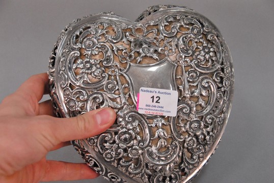 Lot 12: Sterling silver heart shaped jewel box.