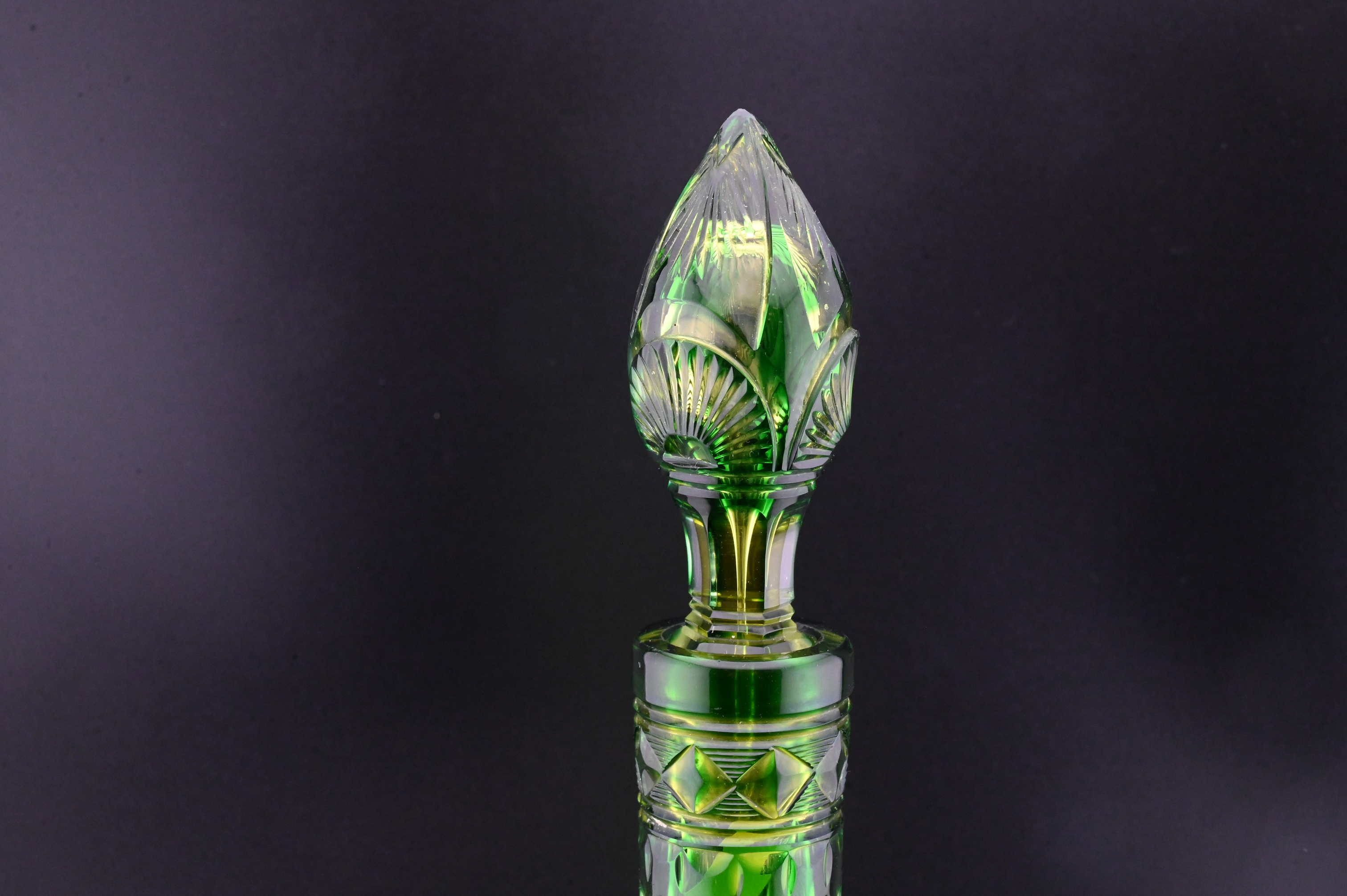 Stevens & Williams Green Cameo-Cut Decanter with Stopper