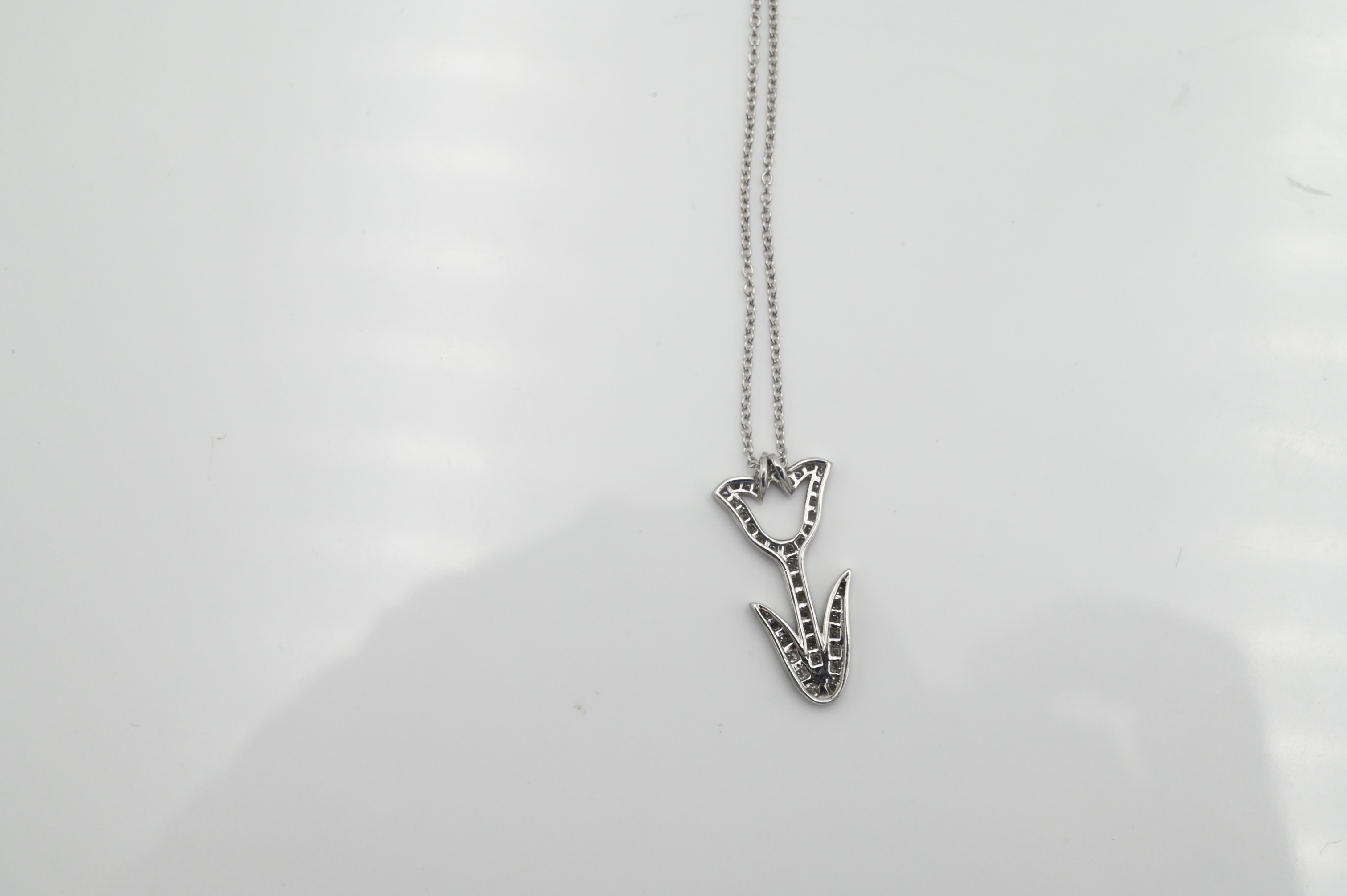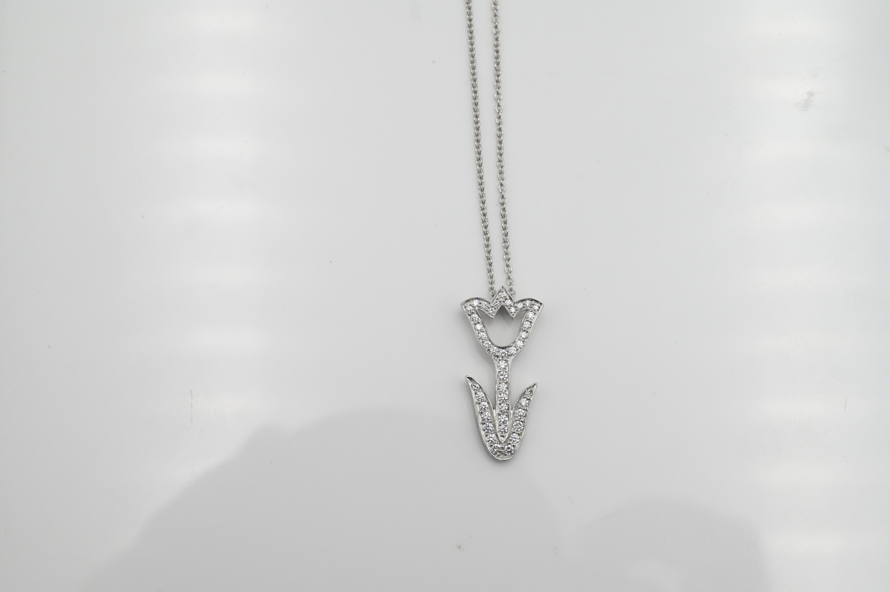 Lot 12: Tiffany & Co. Platinum Diamond Tulip Pendant and Chain