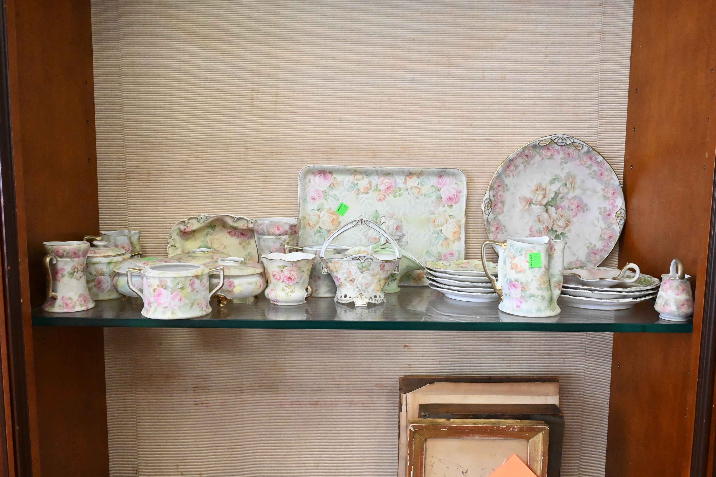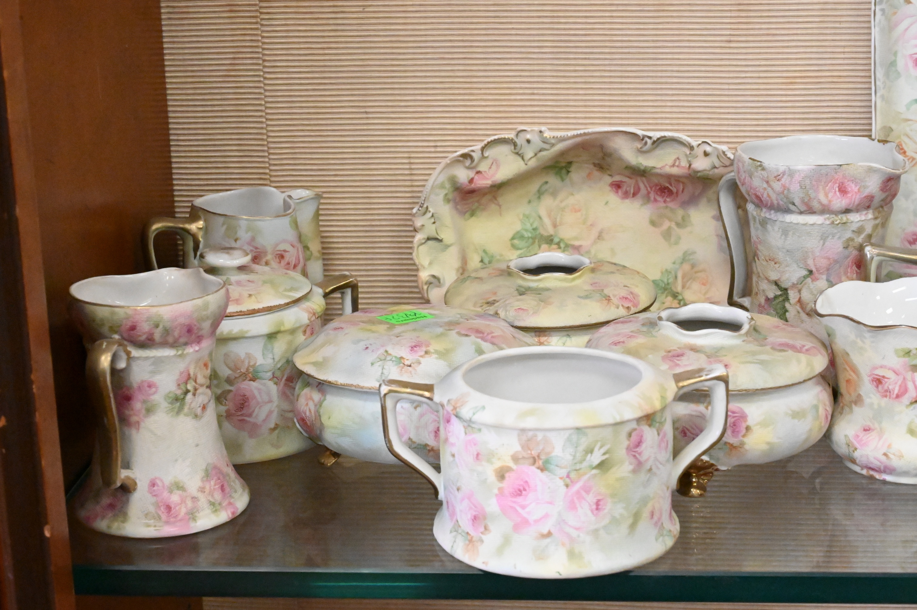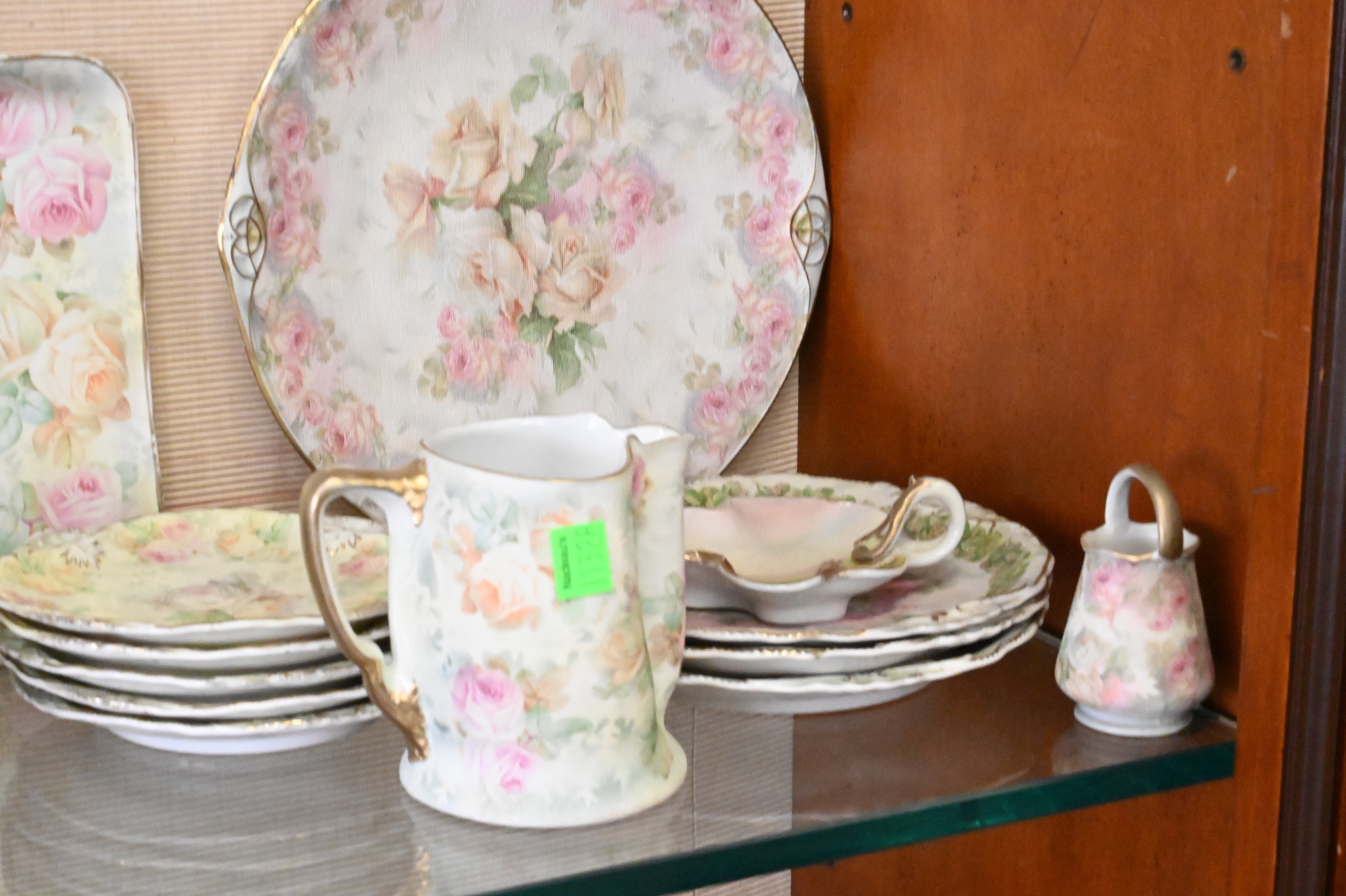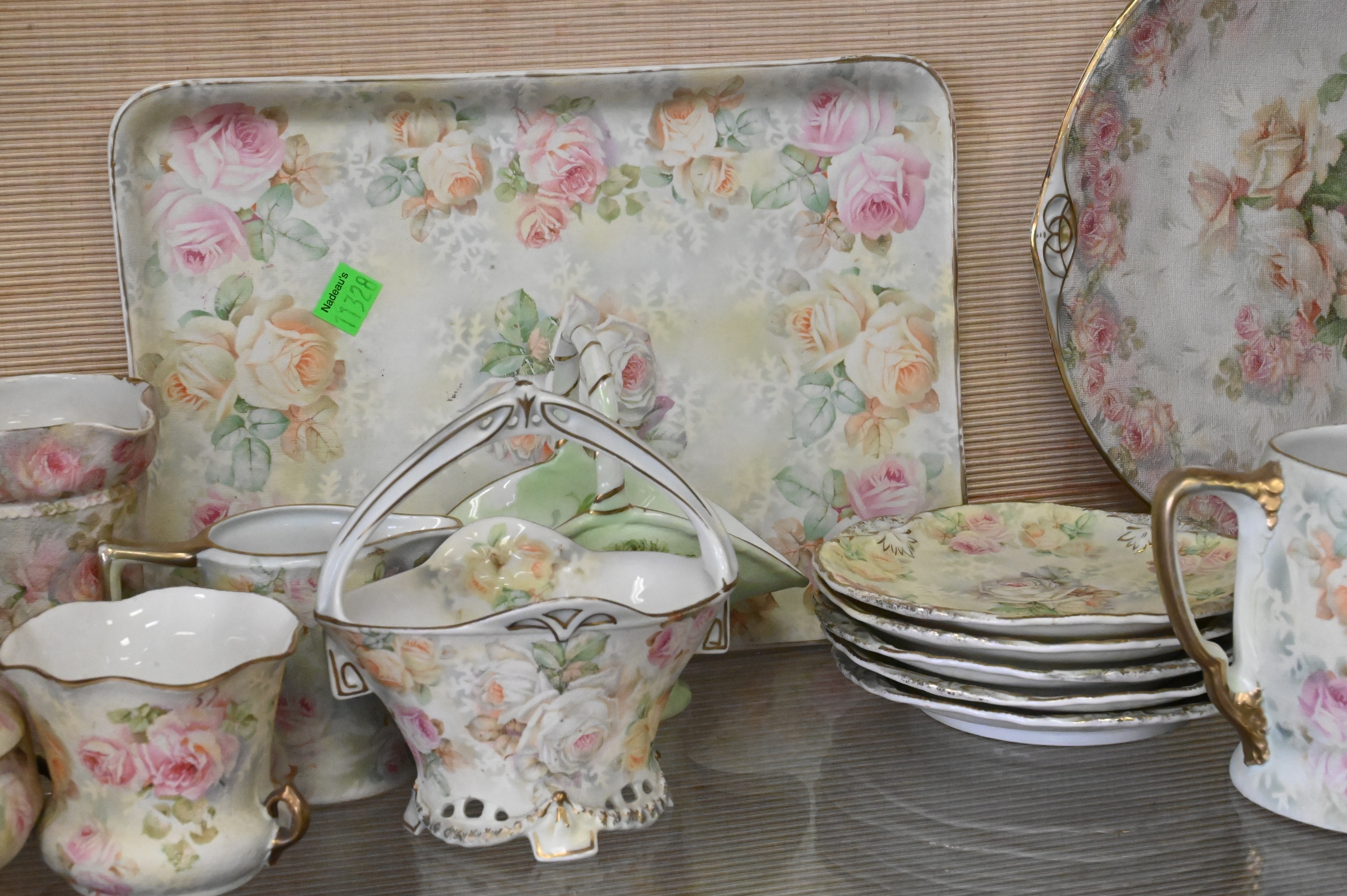 hair receivers, hat pin holders, baskets, cake plates, trays, ewers, covered powder box