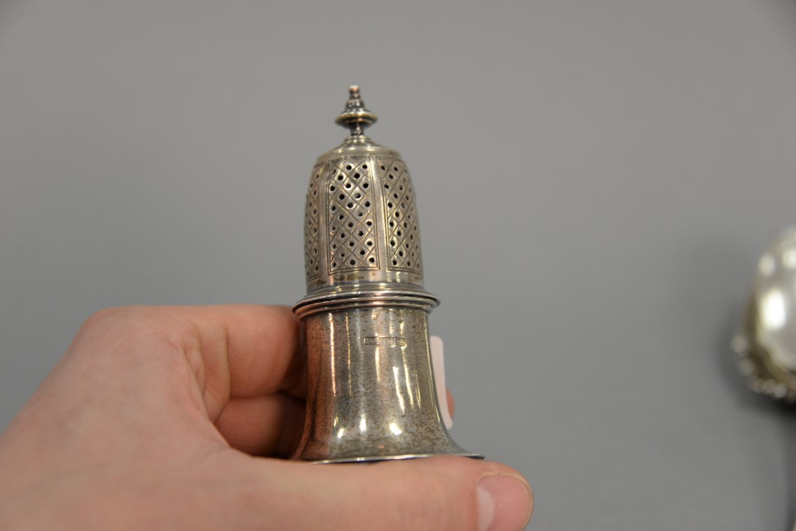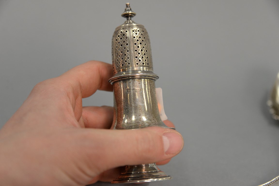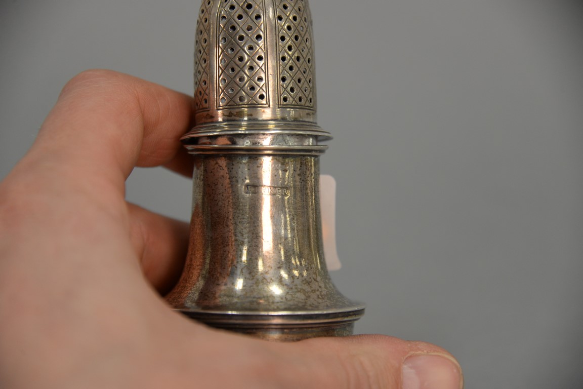 Early silver small castor. ht. 5in., 3.96 t oz.