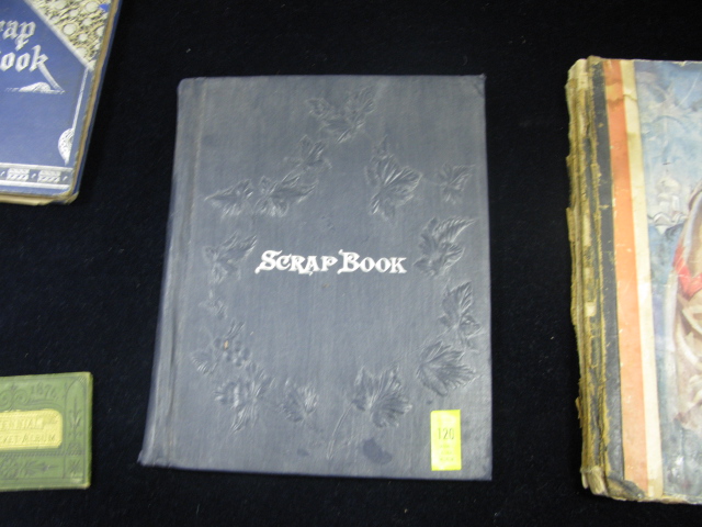 Group to include 8 books scrapbooks, small Centennial pocket album, World’s Fair Catalog 1939, Cinderella book from 1890 etc.