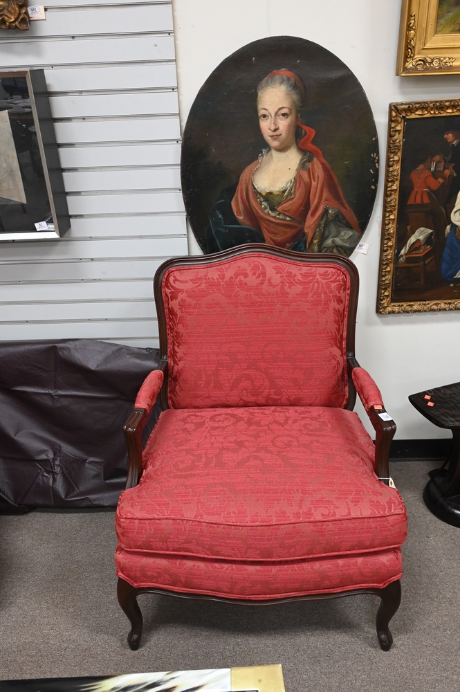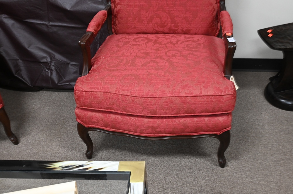 Lot 120: Pair of Pearson Louis XV Style Open Armchairs, having rose color upholstery.