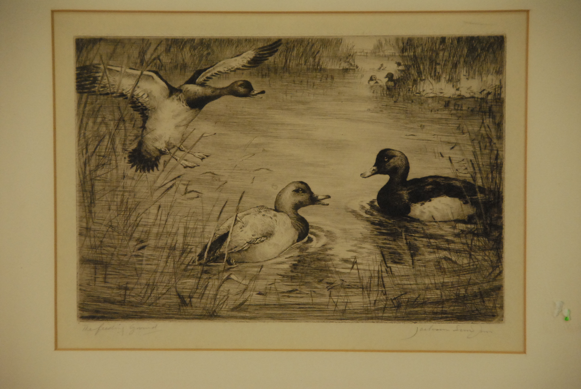 Two etchings including William Joseph Schaldach 1896-1982 FLYING WOODCOCK etching signed lower right W. J. Schaldach and Jackson Simpson 1893-1963 THE FEEDING GROUND etching signed lower right Jackson Simpson.