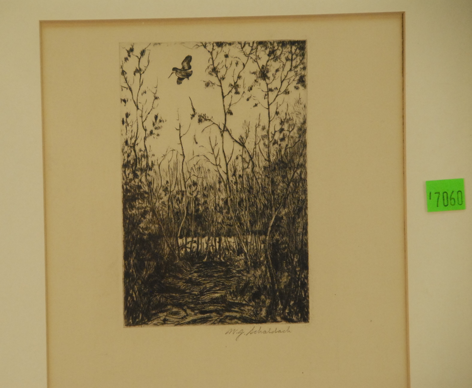 Lot 120: Two etchings including William Joseph Schaldach 1896-1982 FLYING WOODCOCK etching signed lower right W. J. Schaldach and Jackson S…