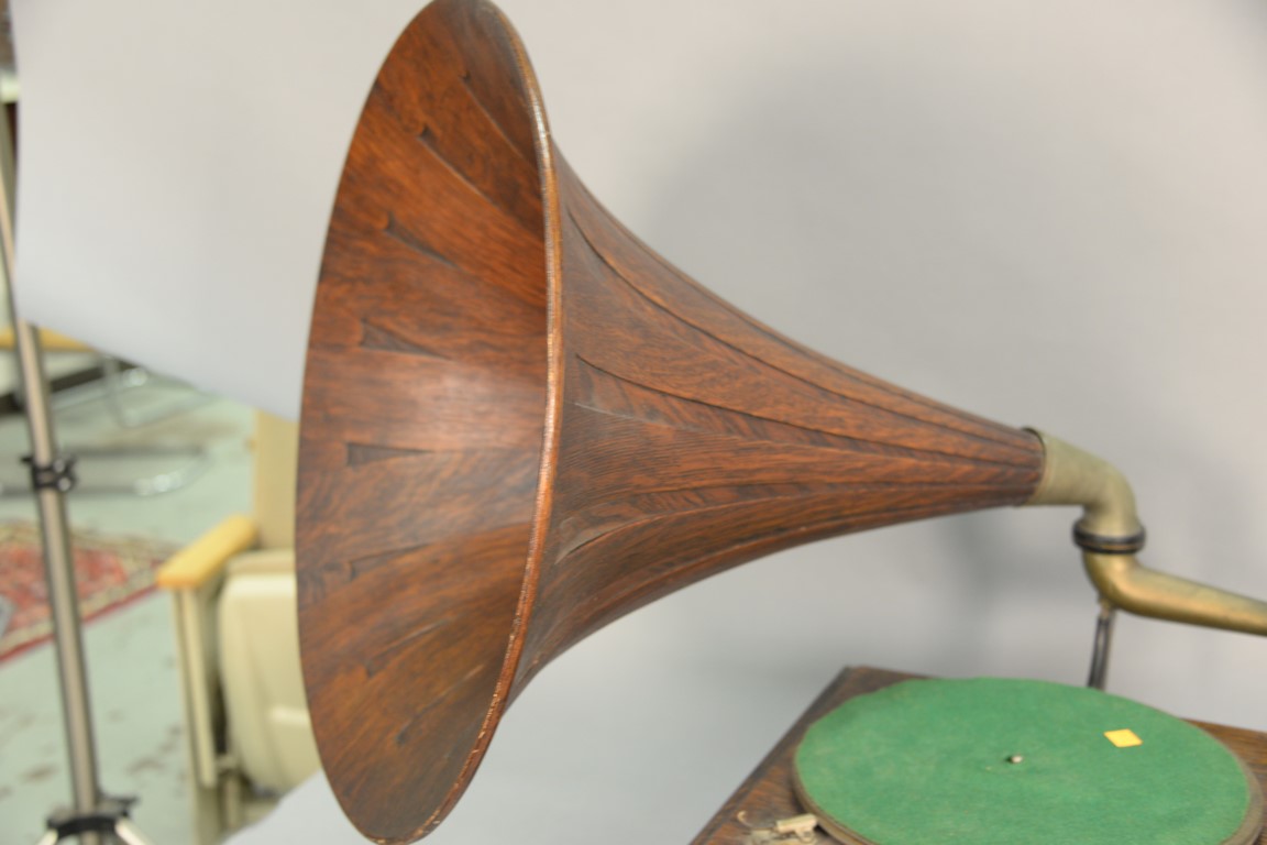 Lot 120: Victor V Talking Machine Phonograph Gramophone with wood horn in working condition, made by Victor Talking Mch. Co., Type Vic. V 278…