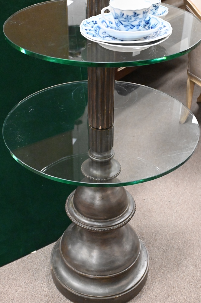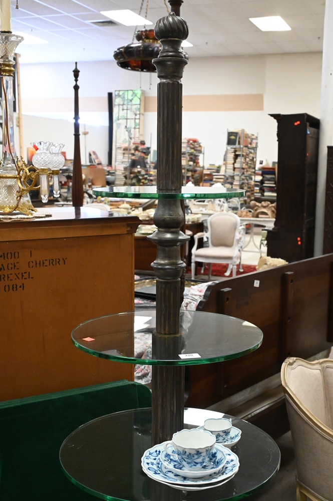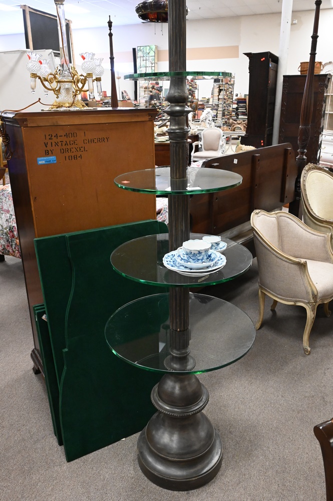 Wood and Glass Etagere/Dumbwaiter, store display 1920’s/1930’s, height 72 inches.