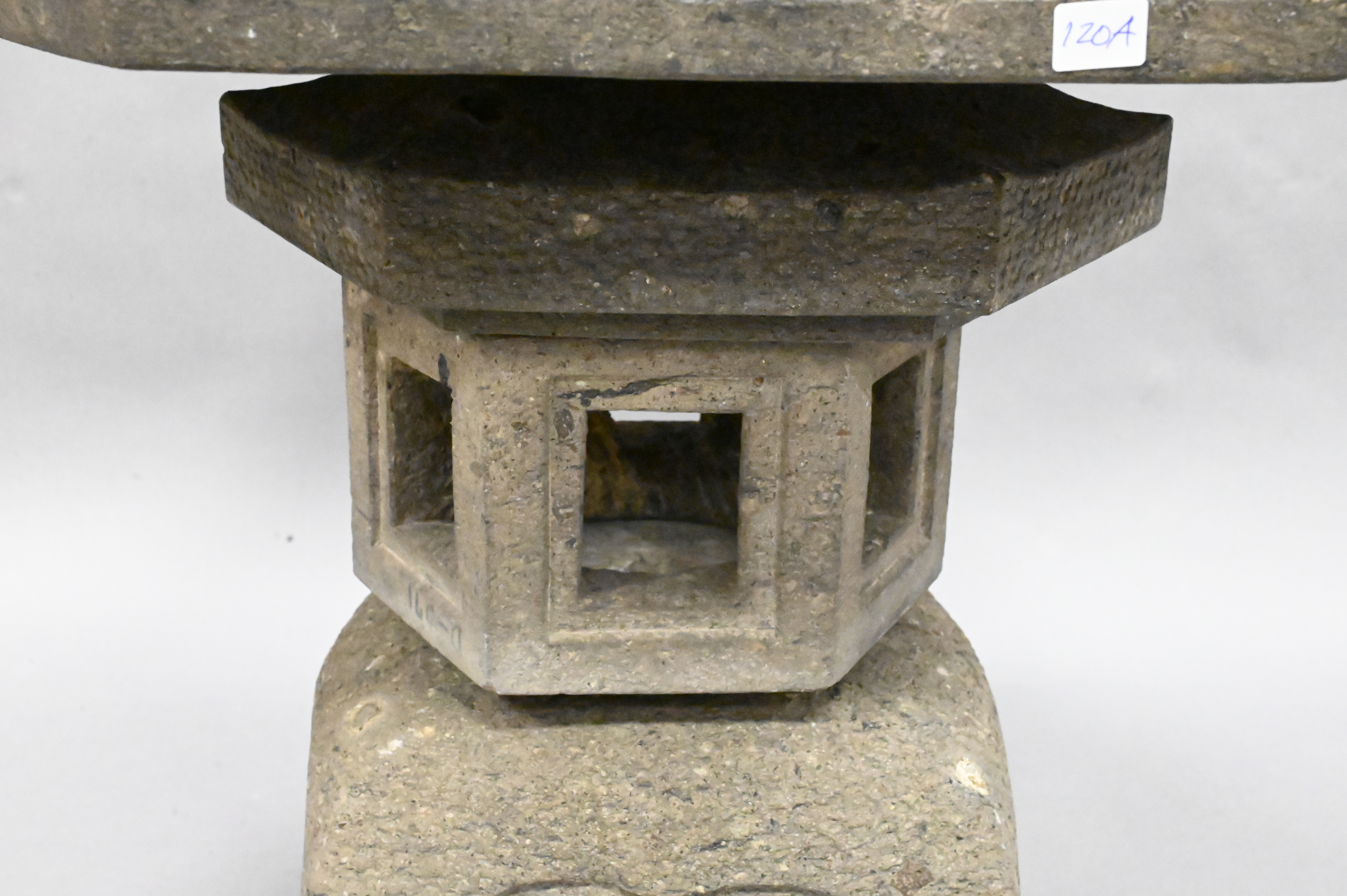 Four Piece Outdoor Cement Pagoda, height 24 inches, diameters 23 inches. Provenance: Property from a private New York collection sold to benefit charitable foundations.