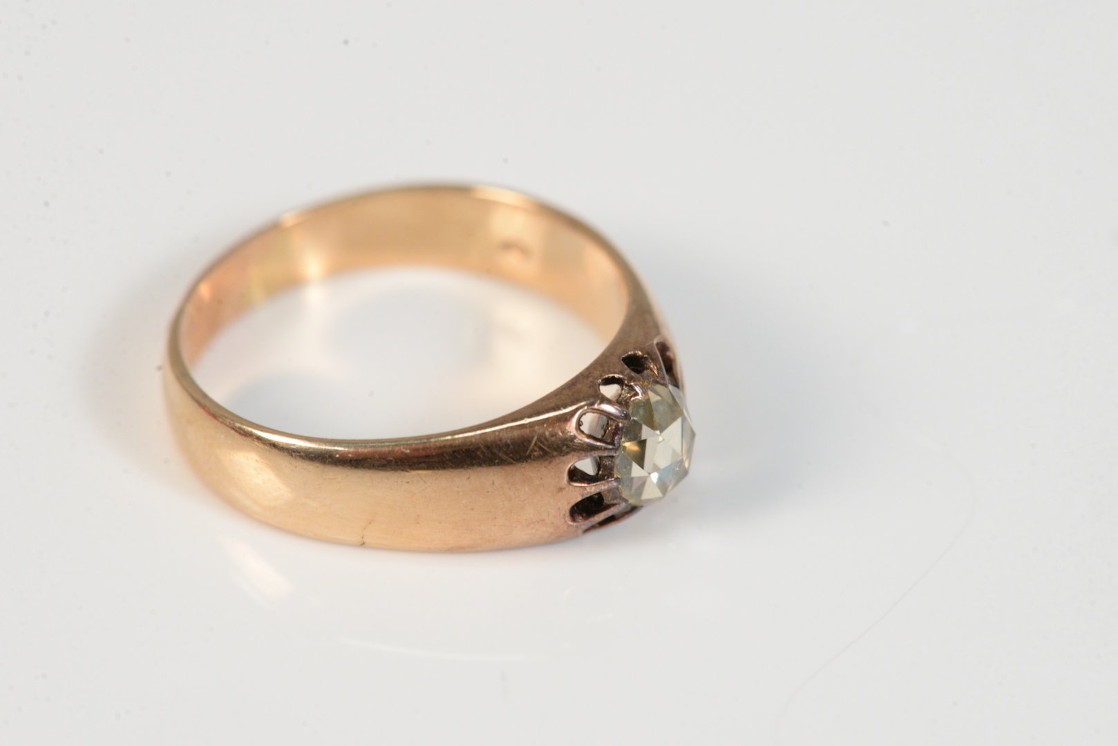 Lot 121: 14 Karat Yellow Gold and Diamond Ring Set with oval mine cut diamond approximately 1.5 carat, approximately 6.6 x 7.6 millimeters