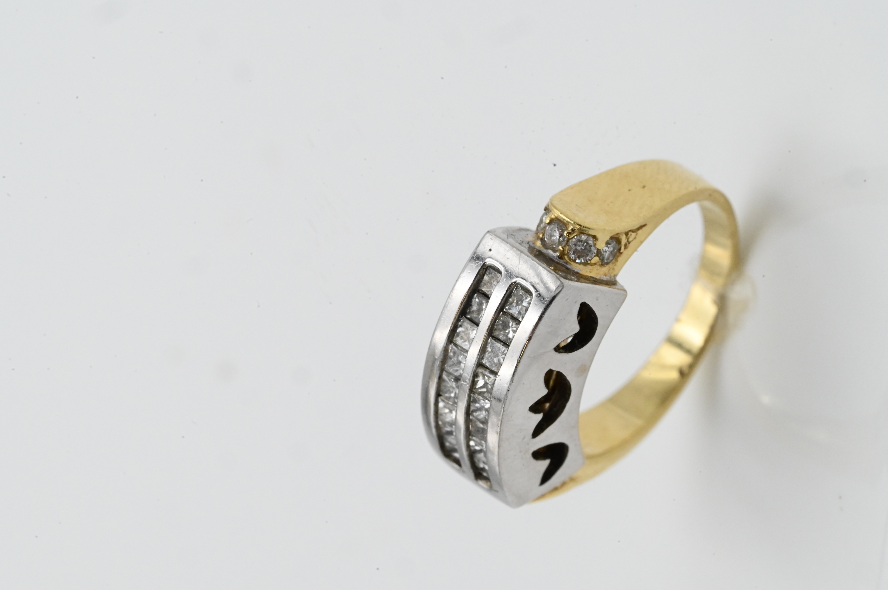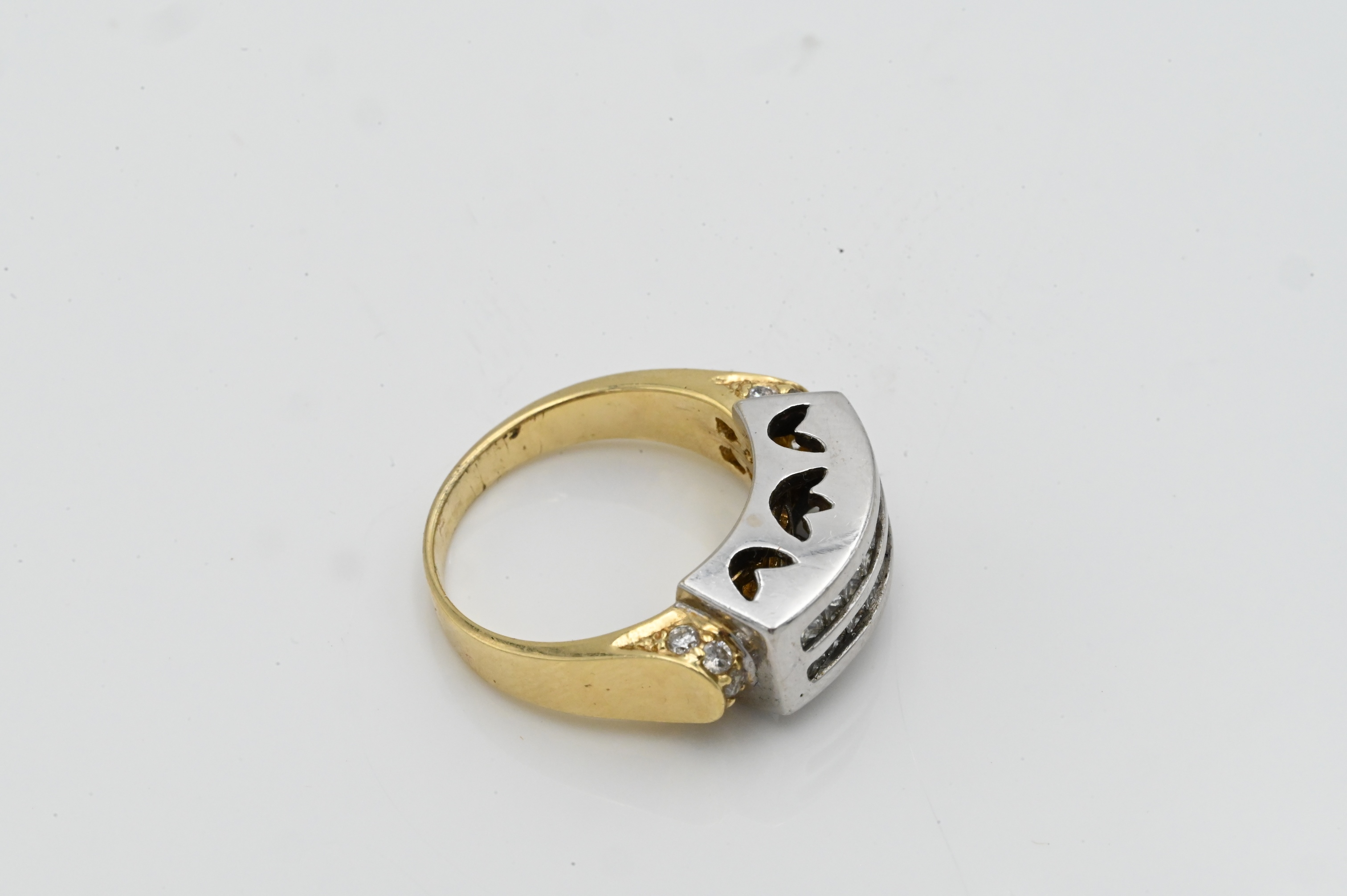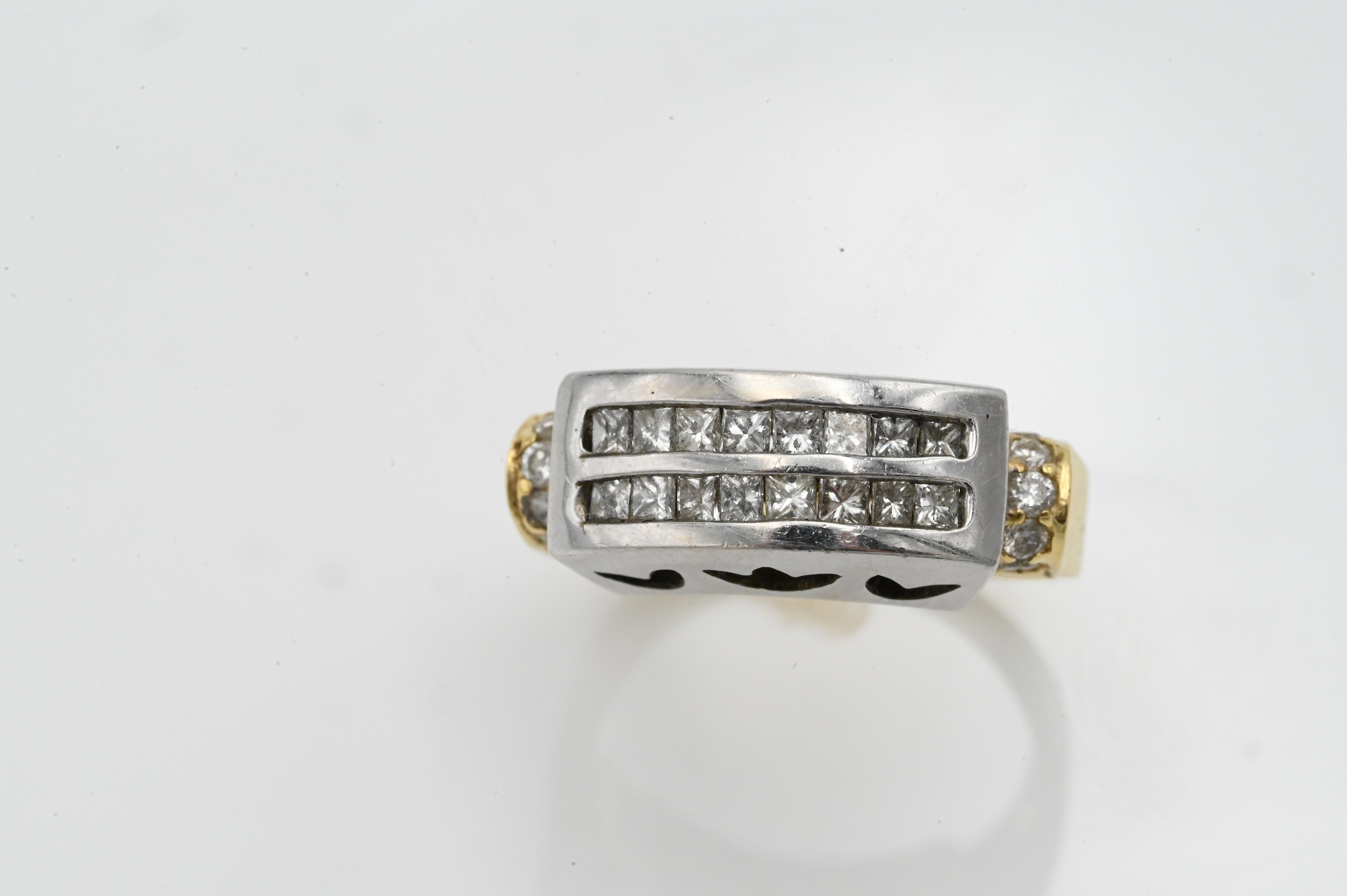 set with white gold head having two rows of channel set diamonds