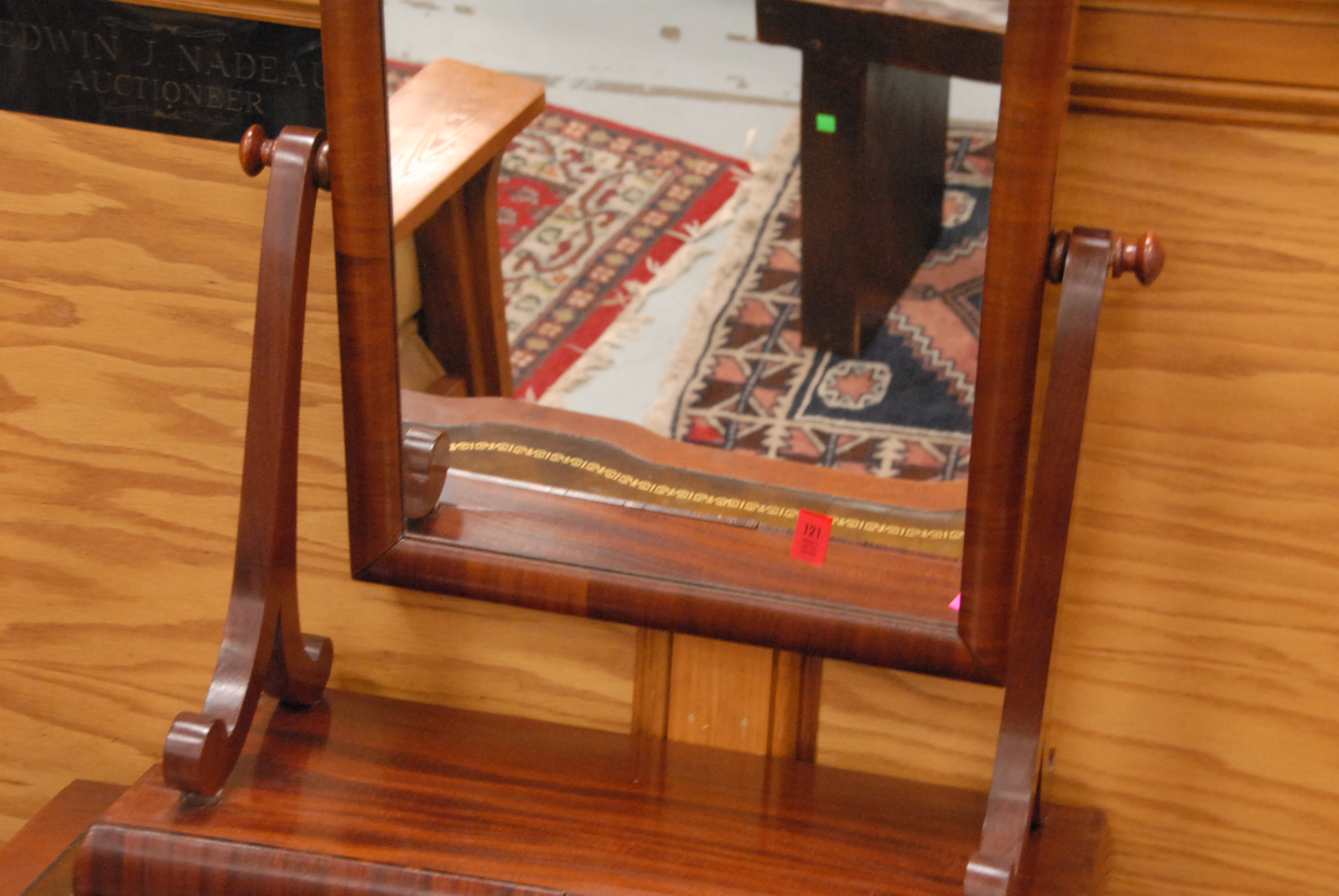 Empire mahogany shaving mirror with two drawers, circa 1830.