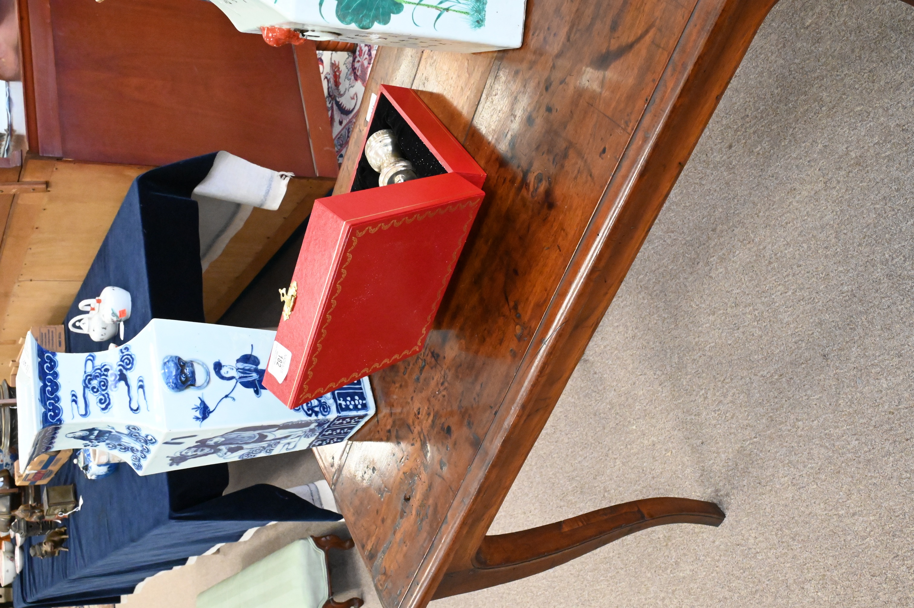with single frieze door on one end, partially made up of old elements, some sun fading and age cracks to top, circa 1880