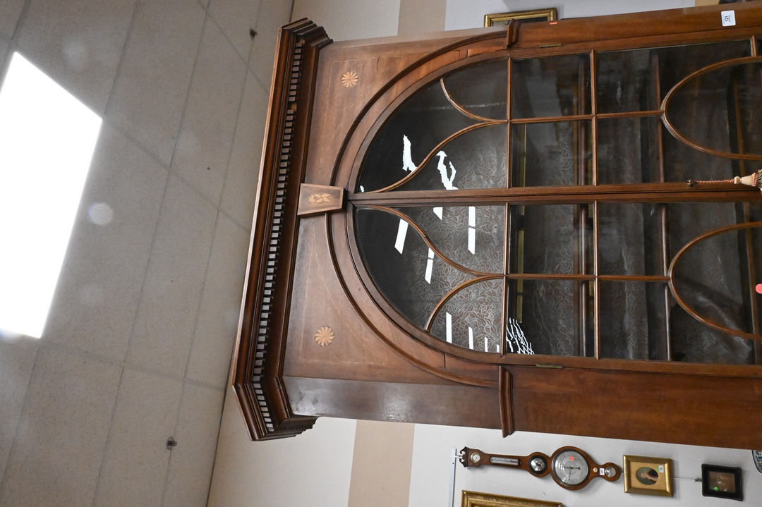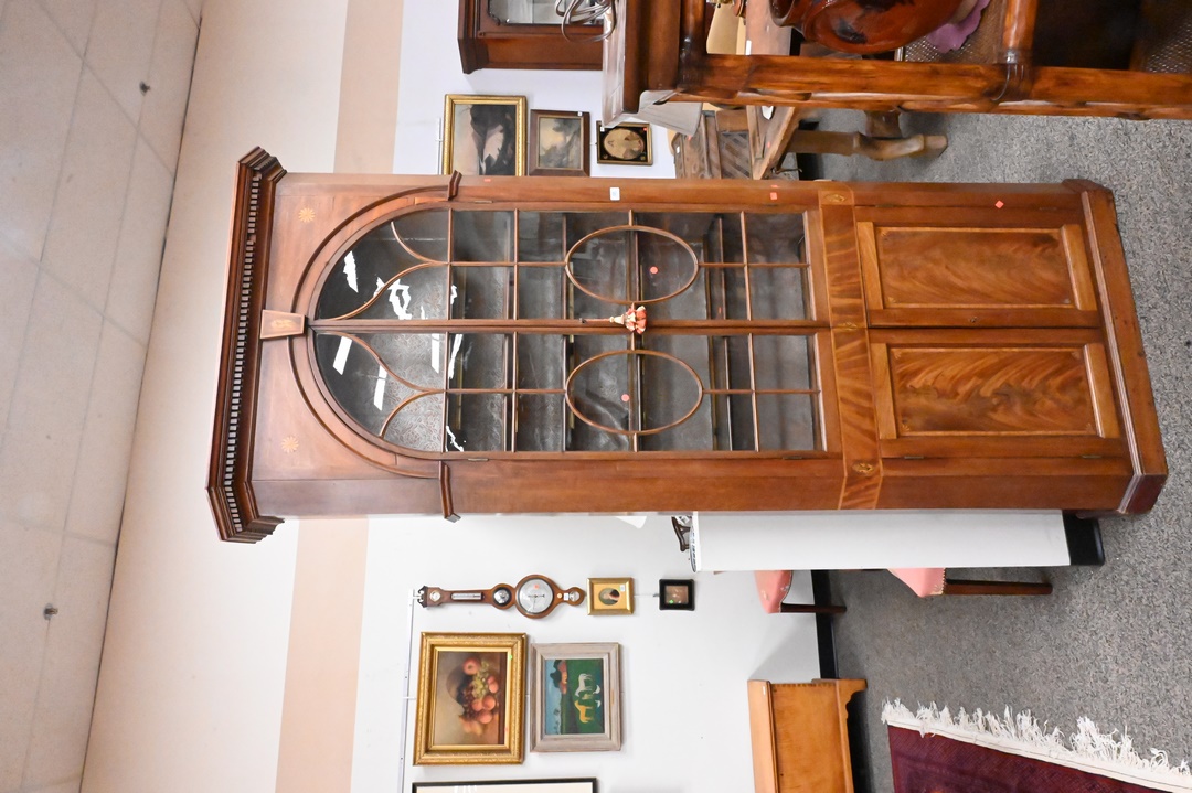 George III Mahogany China Cabinet, having two glazed doors over two blind doors, height 101 inches, width 42 inches. Provenance: Estate of Peter Tillou, Litchfield, Connecticut.