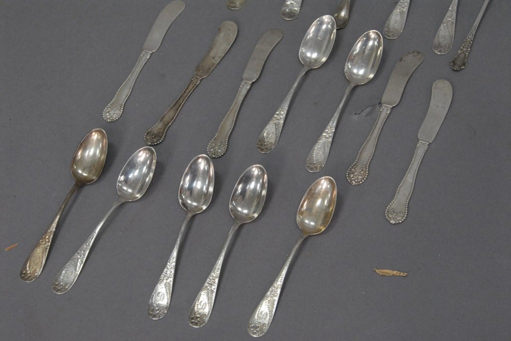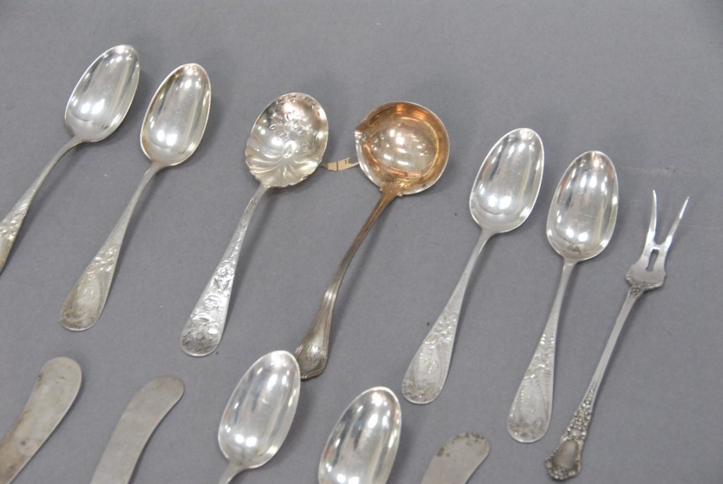 Group of sterling spoons and butter knives, 11.3 troy ounces.