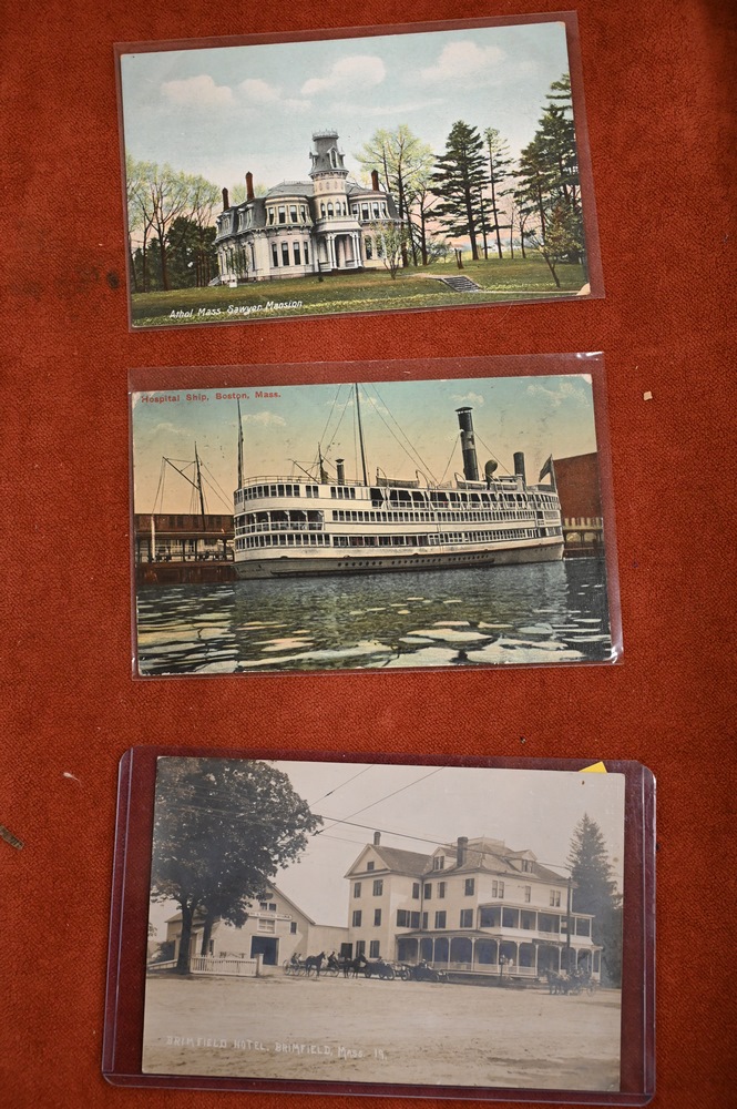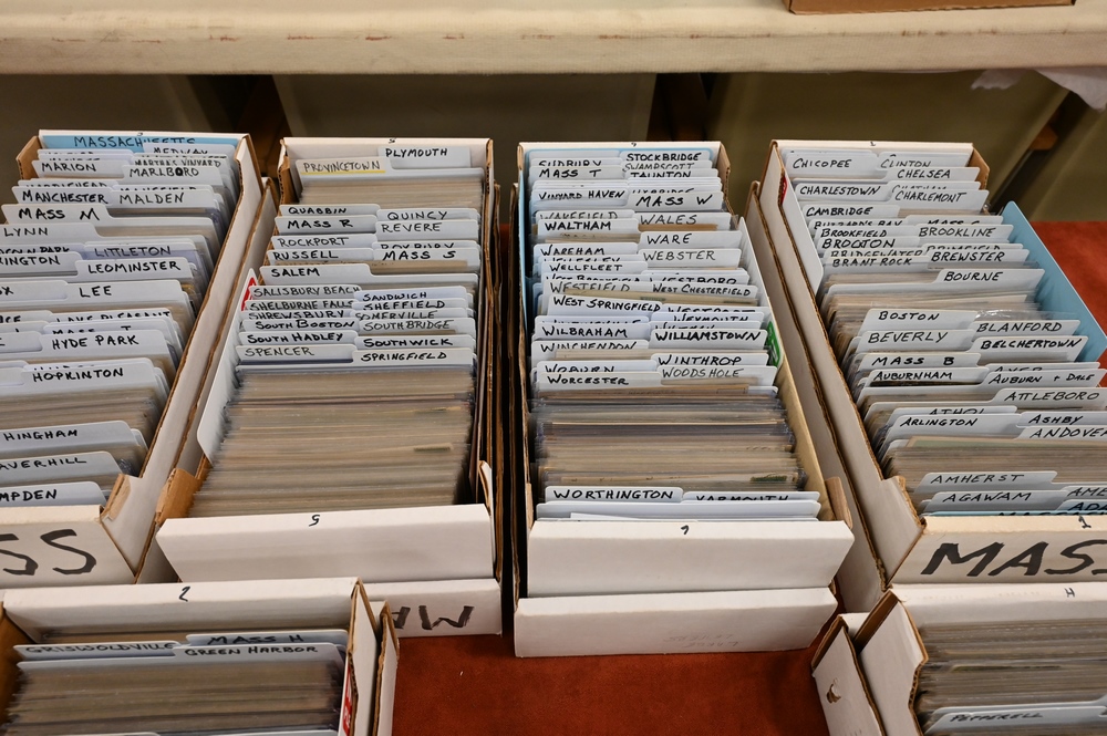 Lot 121: Large Lot of Postcards in Boxes, from Massachusetts, labeled by town, topics include buildings, boats, hotels, etc.