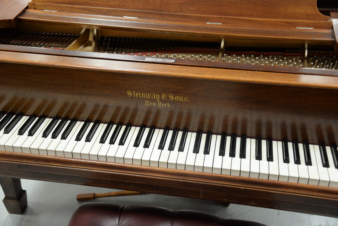 Steinway mahogany baby grand piano, model M, along with adjustable bench. lg. 67 in. wd. 56 in.