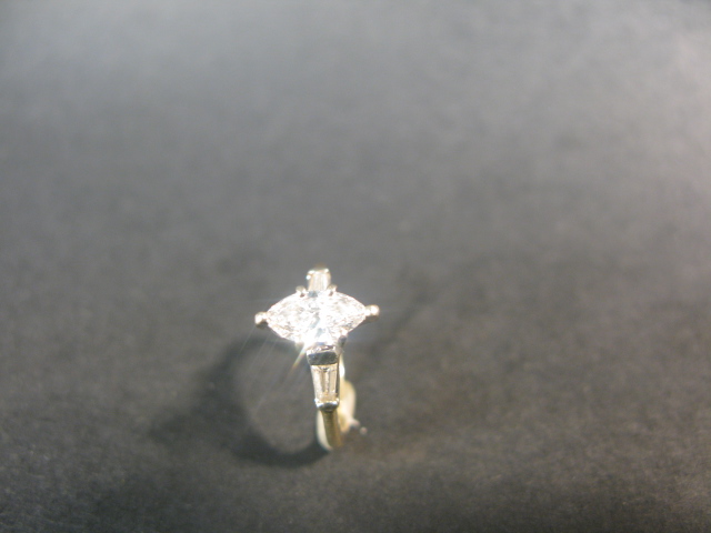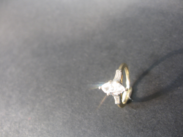 14K gold ring set with a marquise shaped diamond approximately .50 carat.