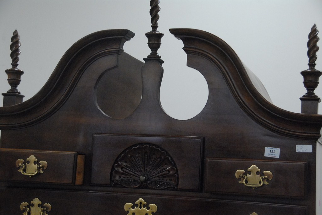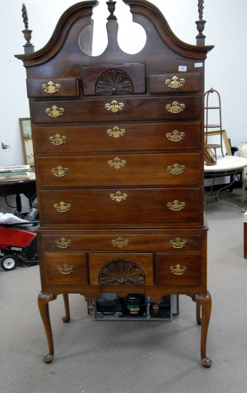 Cherry full bonnet top Queen Anne style highboy by Old Towne, ht. 79 wd. 36.