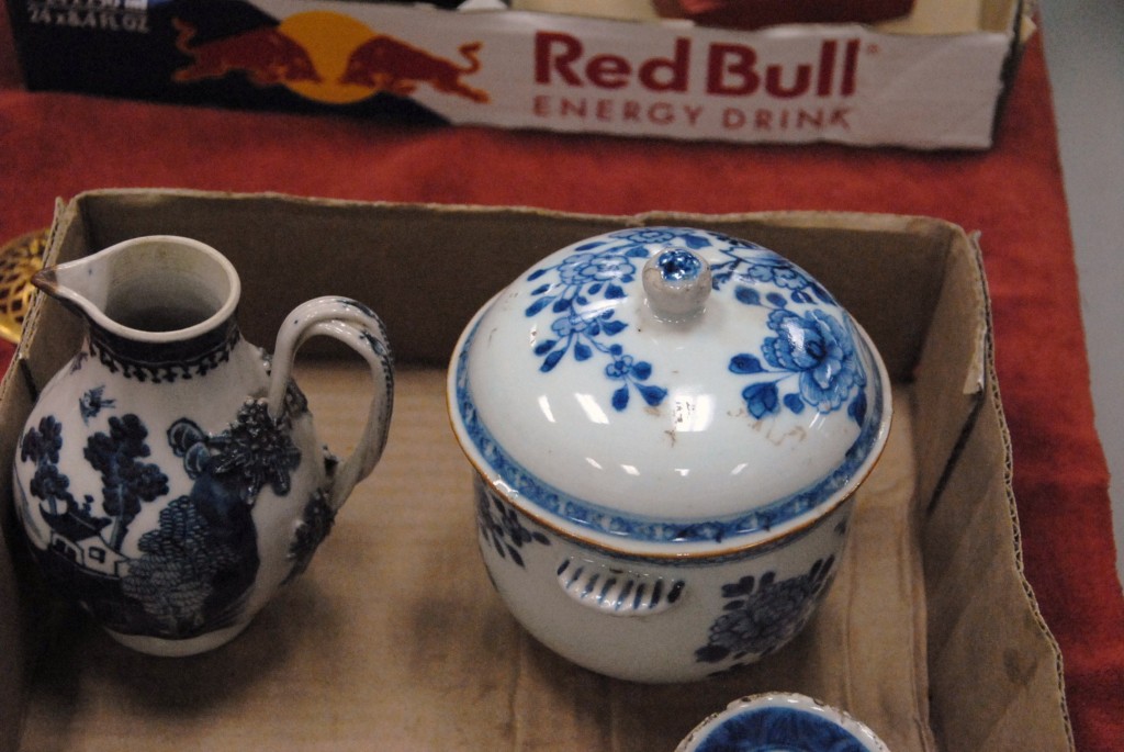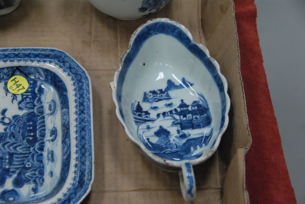 Four piece lot to include Chinese export, covered dish, creamer, small platter, and gravy boat.