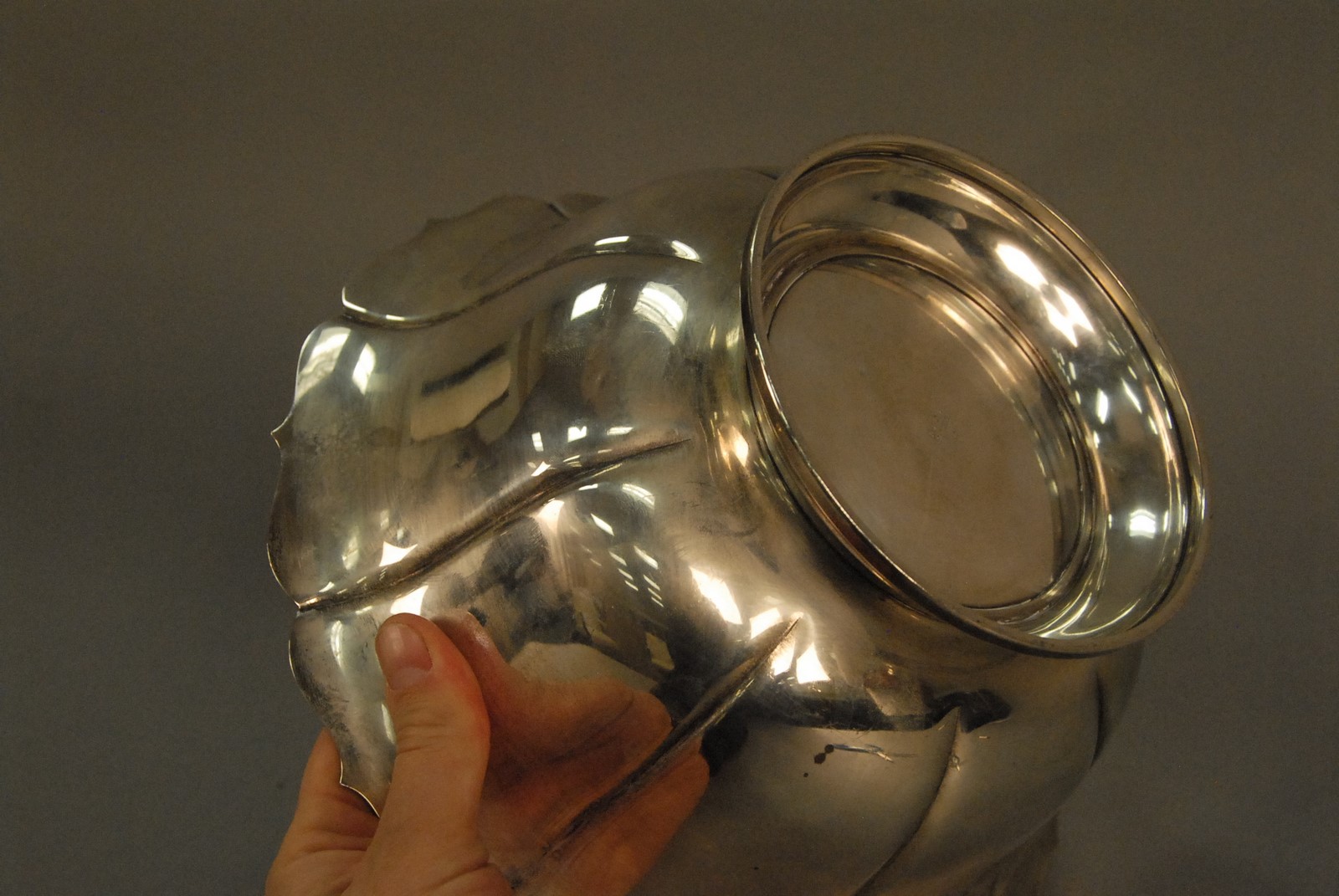 Large sterling silver bowl with scallop rim marked BH Sterling 1011. 28.3 t oz.