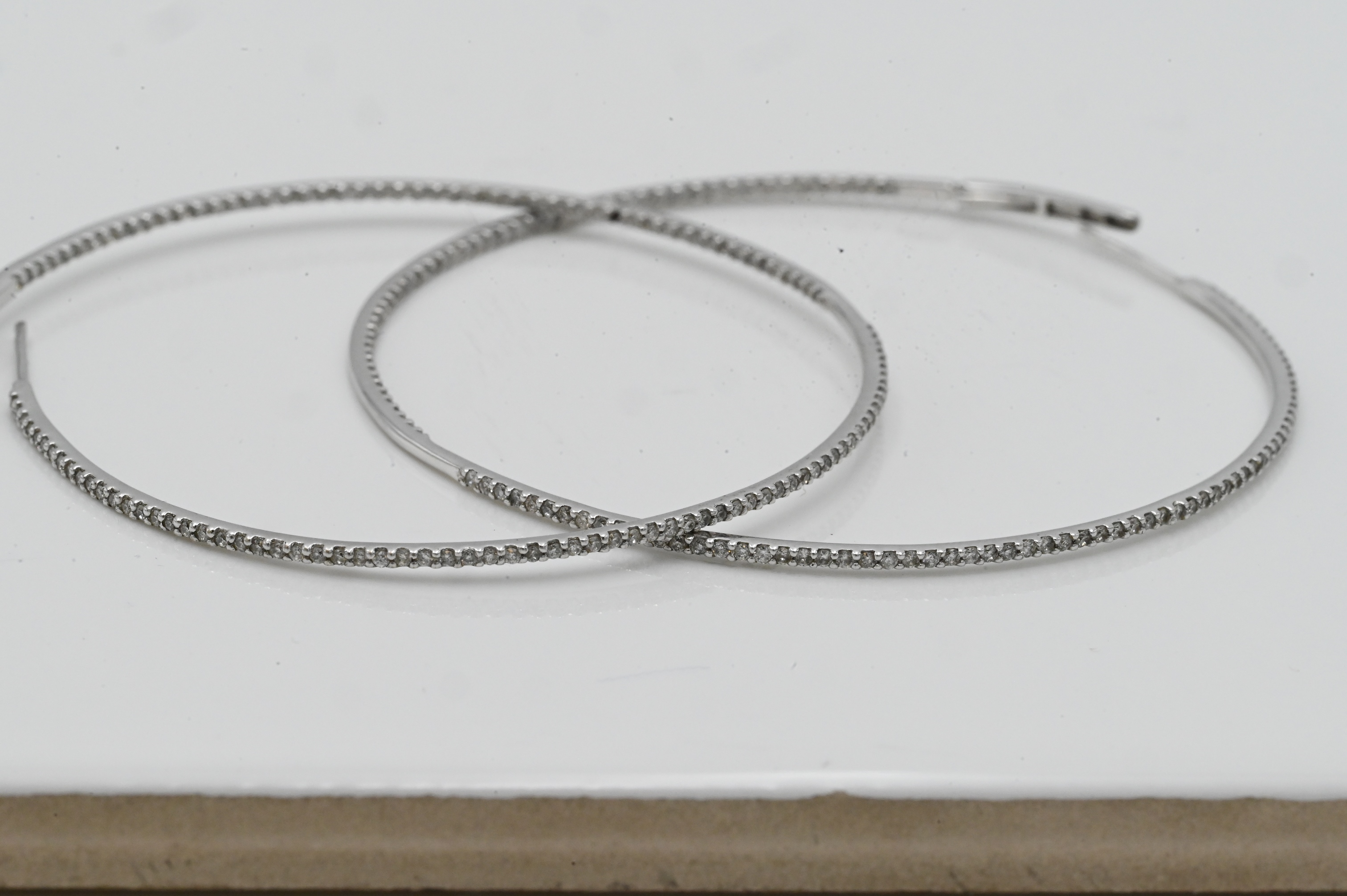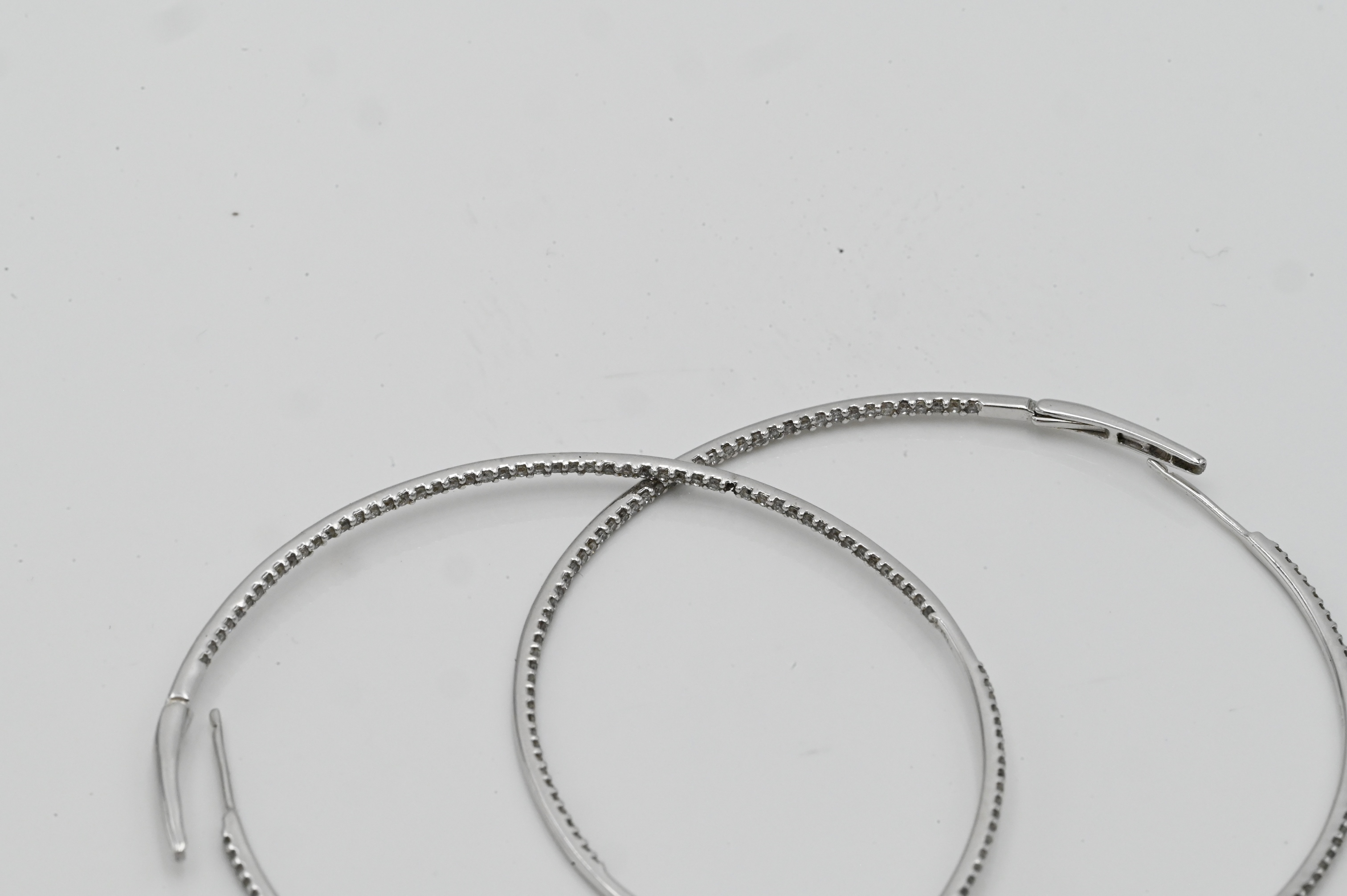 Lot 122: Pair of 14K White Gold Hoop Earrings