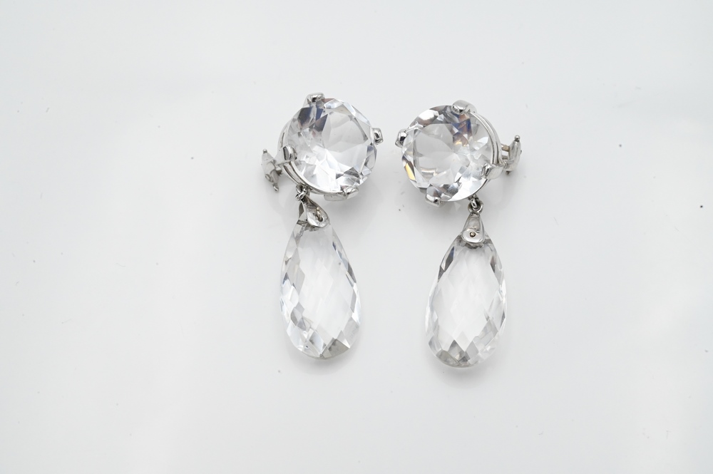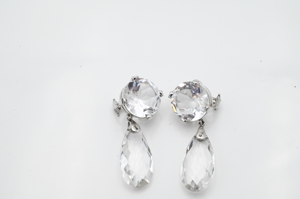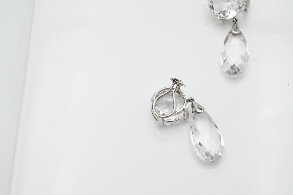 Pair of Tambetti 14 Karat White Gold Earrings, having crystal drop pendants, marked Tambetti 14K.