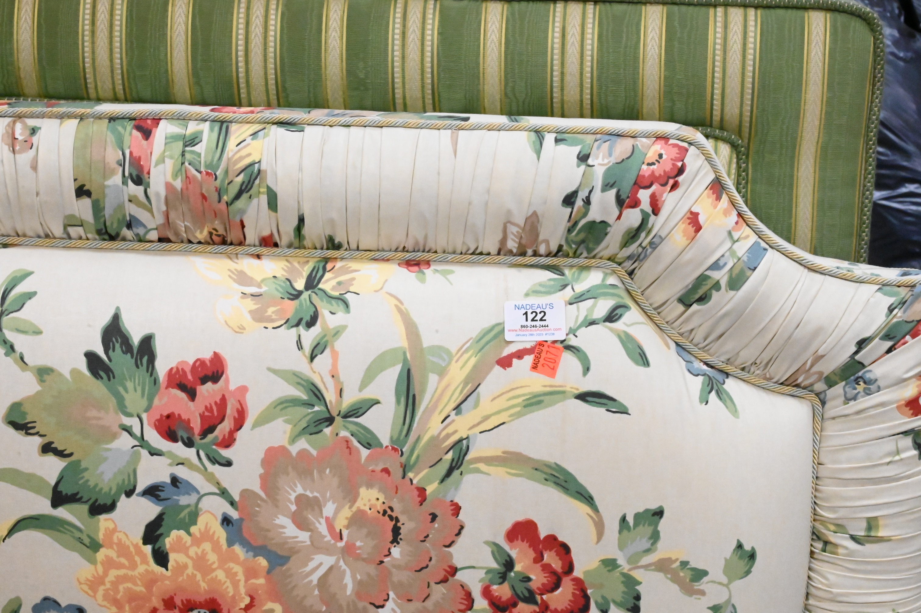 Two Custom Upholstered Full Size Headboards, height 44 and 43 inches, width 60 and 58 inches.