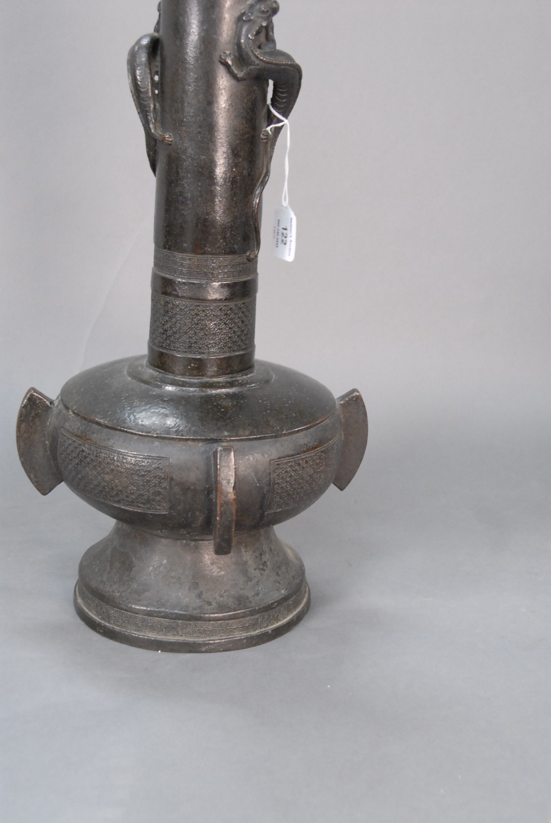 Lot 122: Very large Chinese bronze bottle-form vase with