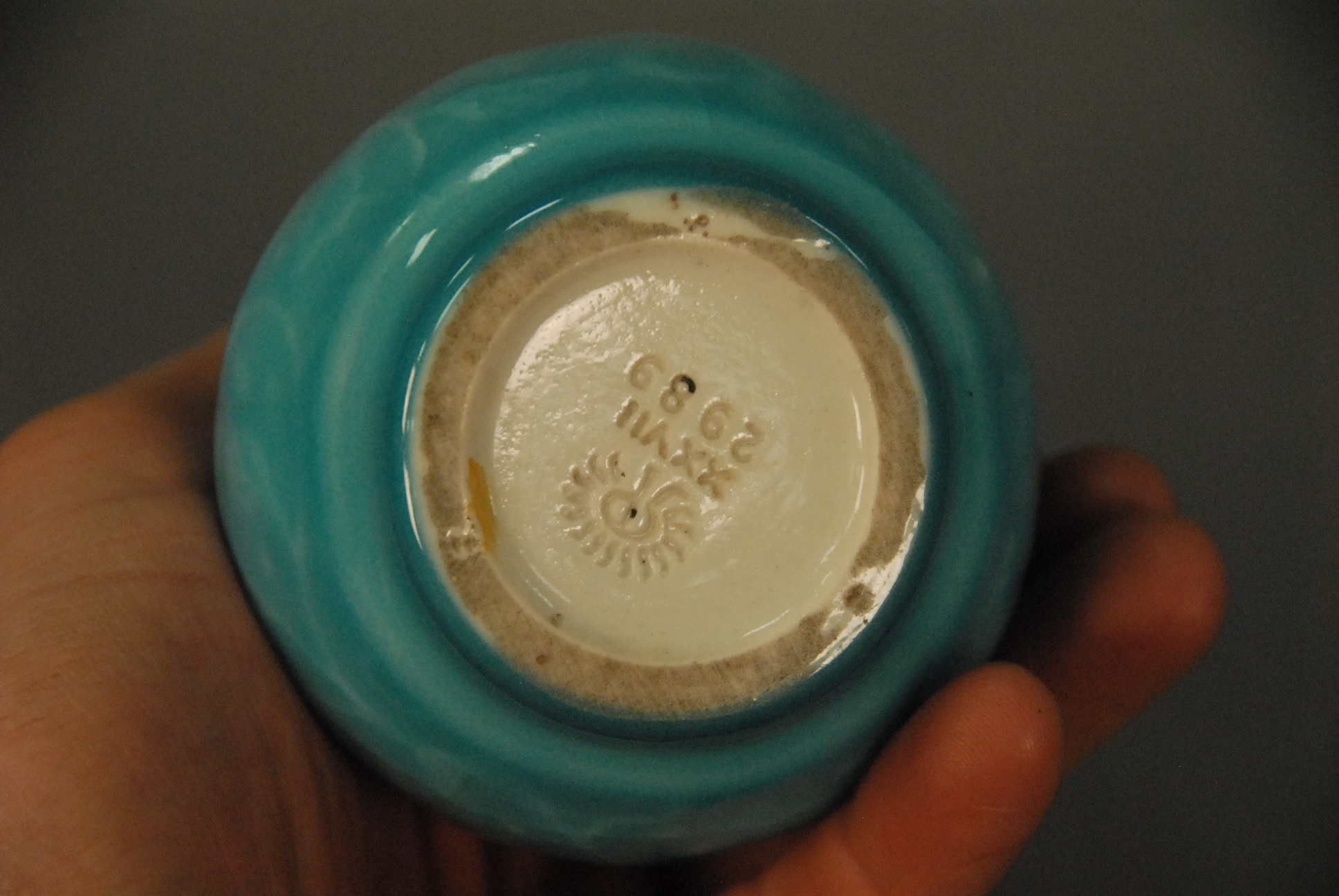 Blue glazed Rookwood vase XXVII #2989. ht. 7in.