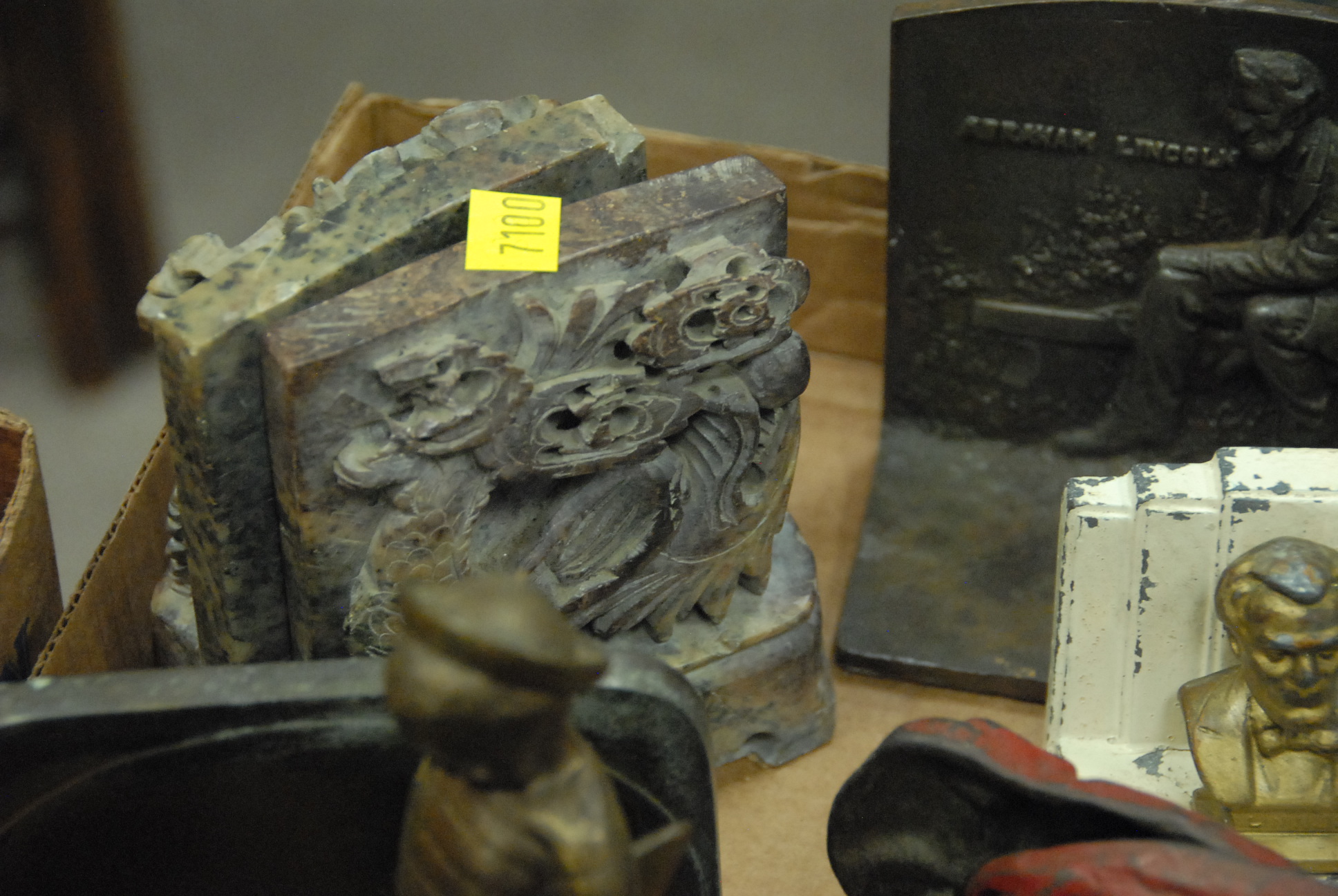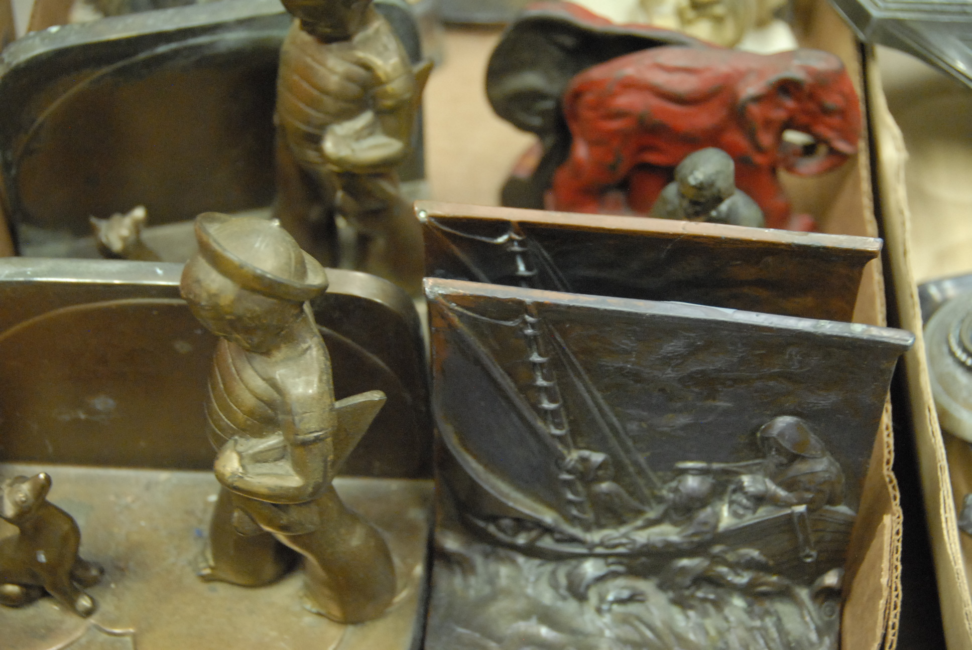 Box lot of four pairs of book ends, plus three single bookends, ht. 4 1/2in. to 7in.