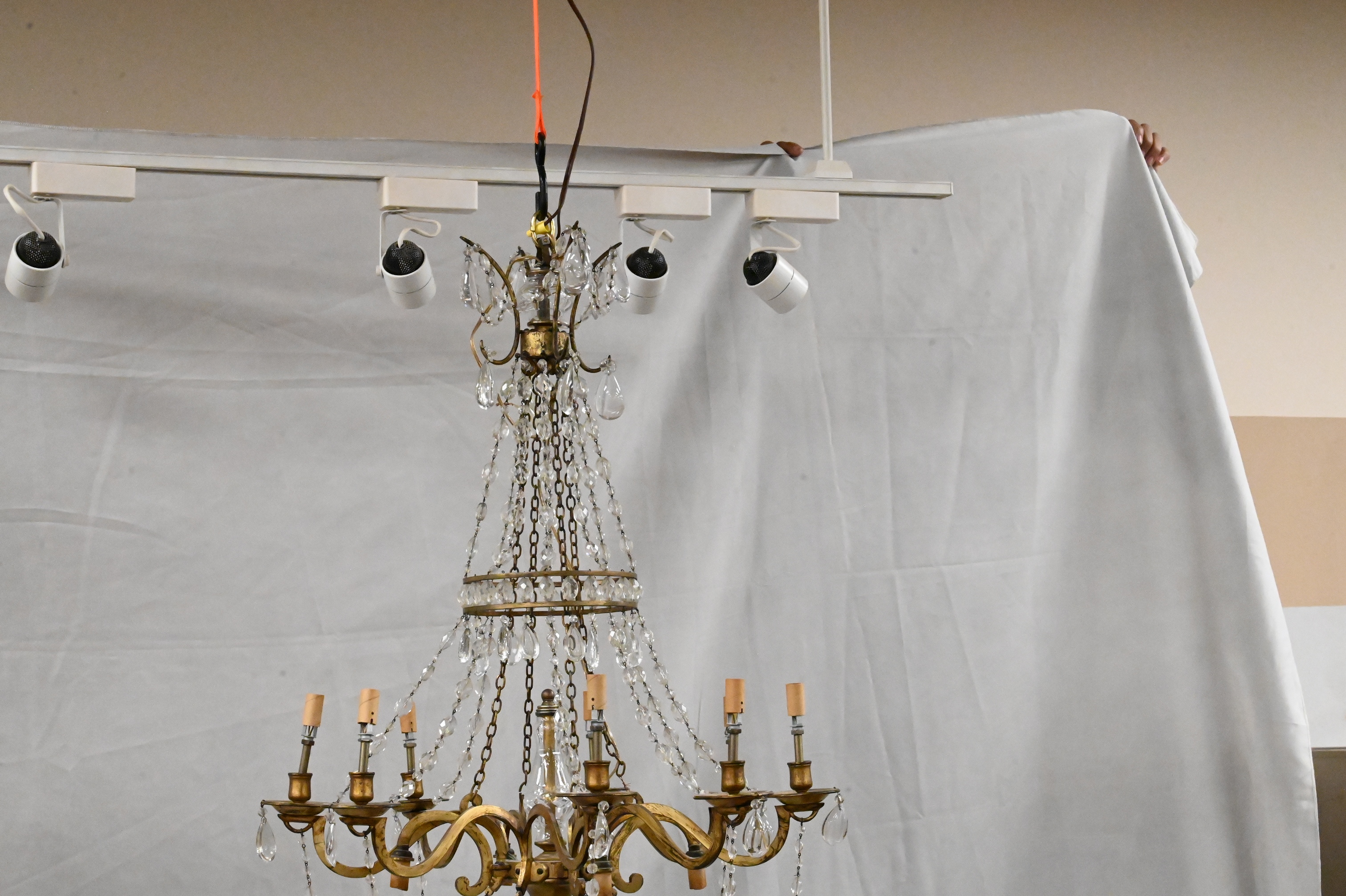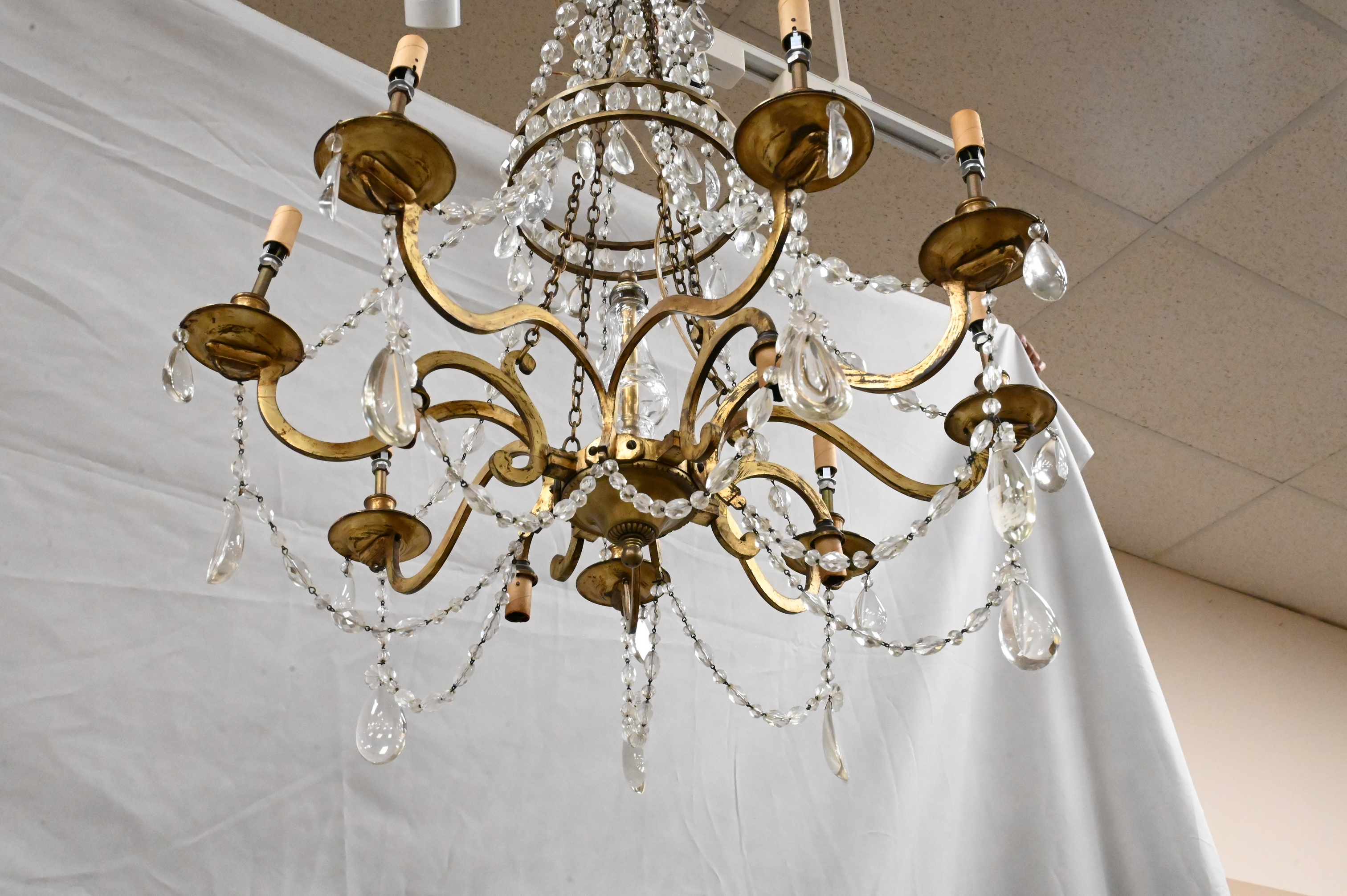 Lot 123: Brass and Crystal 12 Arm Chandelier