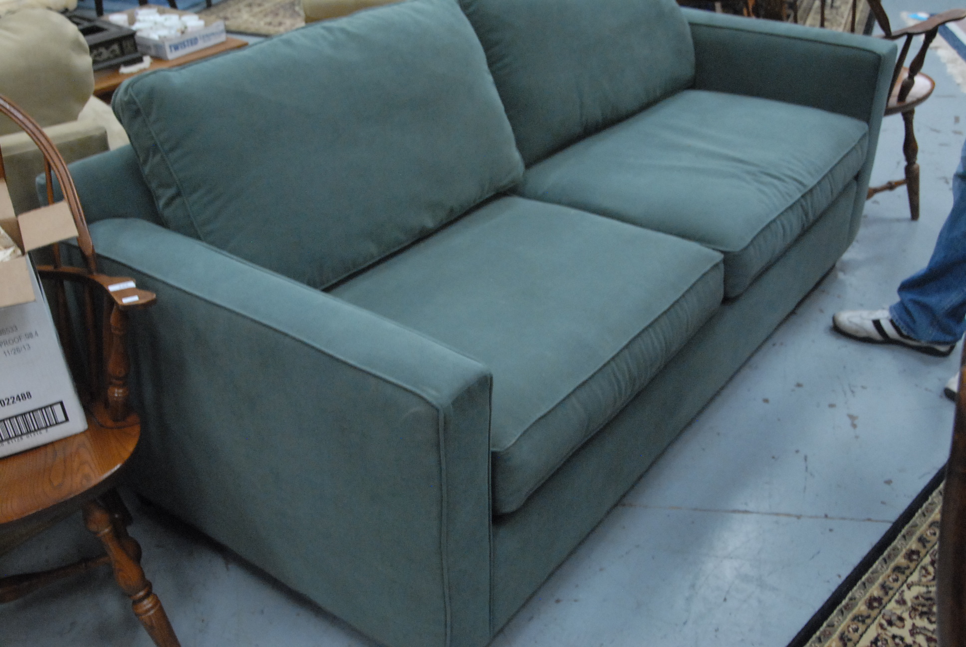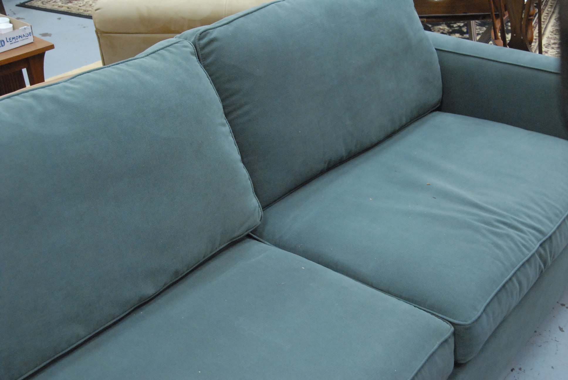 Lot 123: Crate & Barrel upholstered sofa bed, lg. 77in.