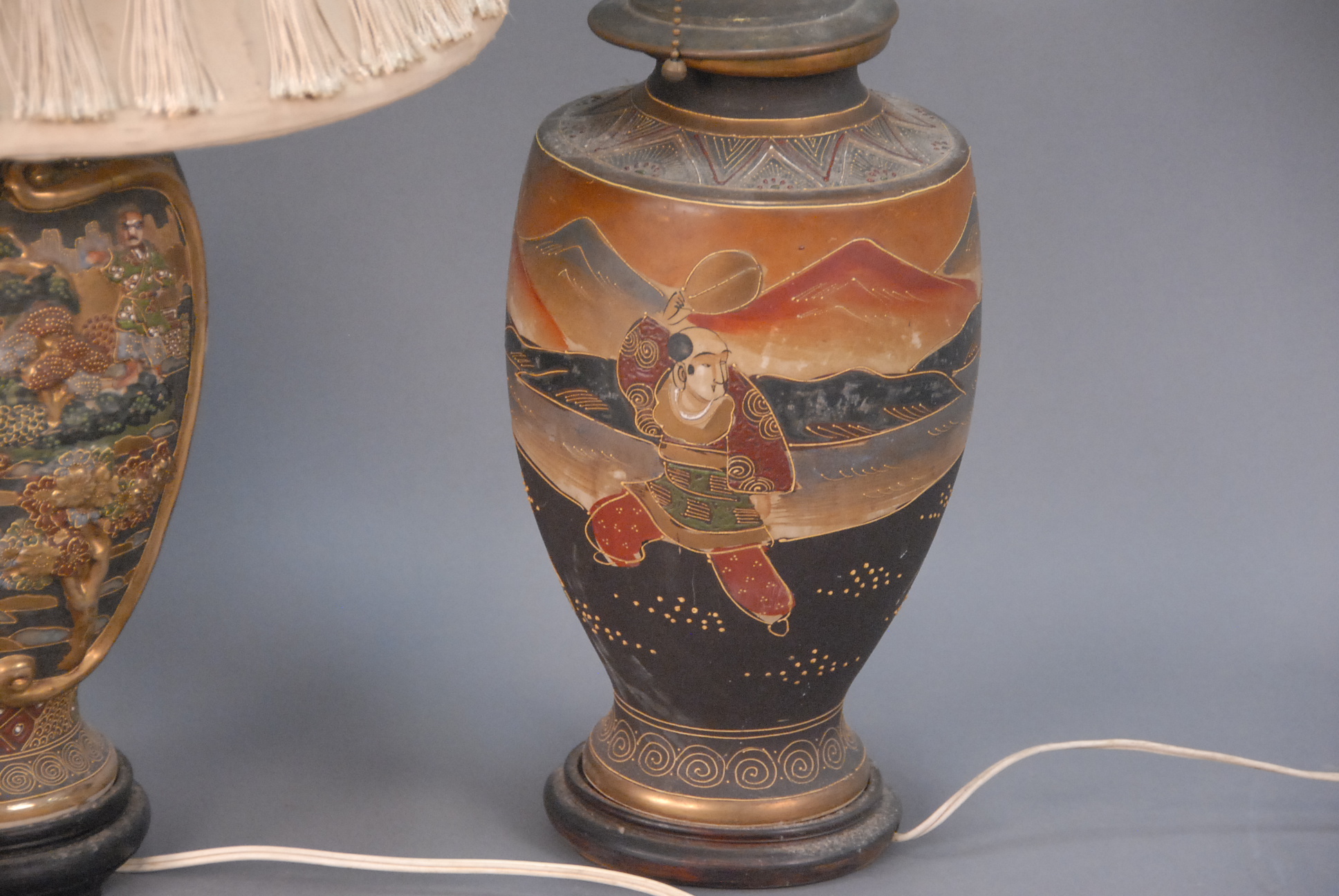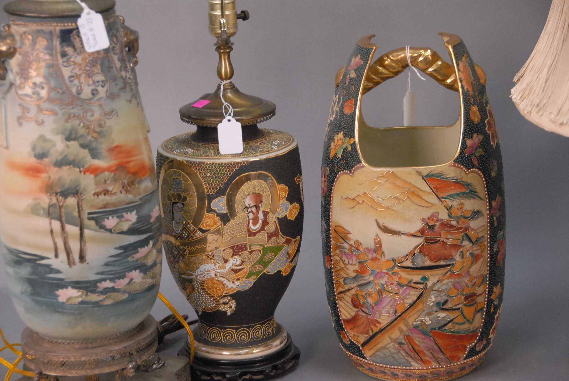 Five piece lot including four lamps and one vase.