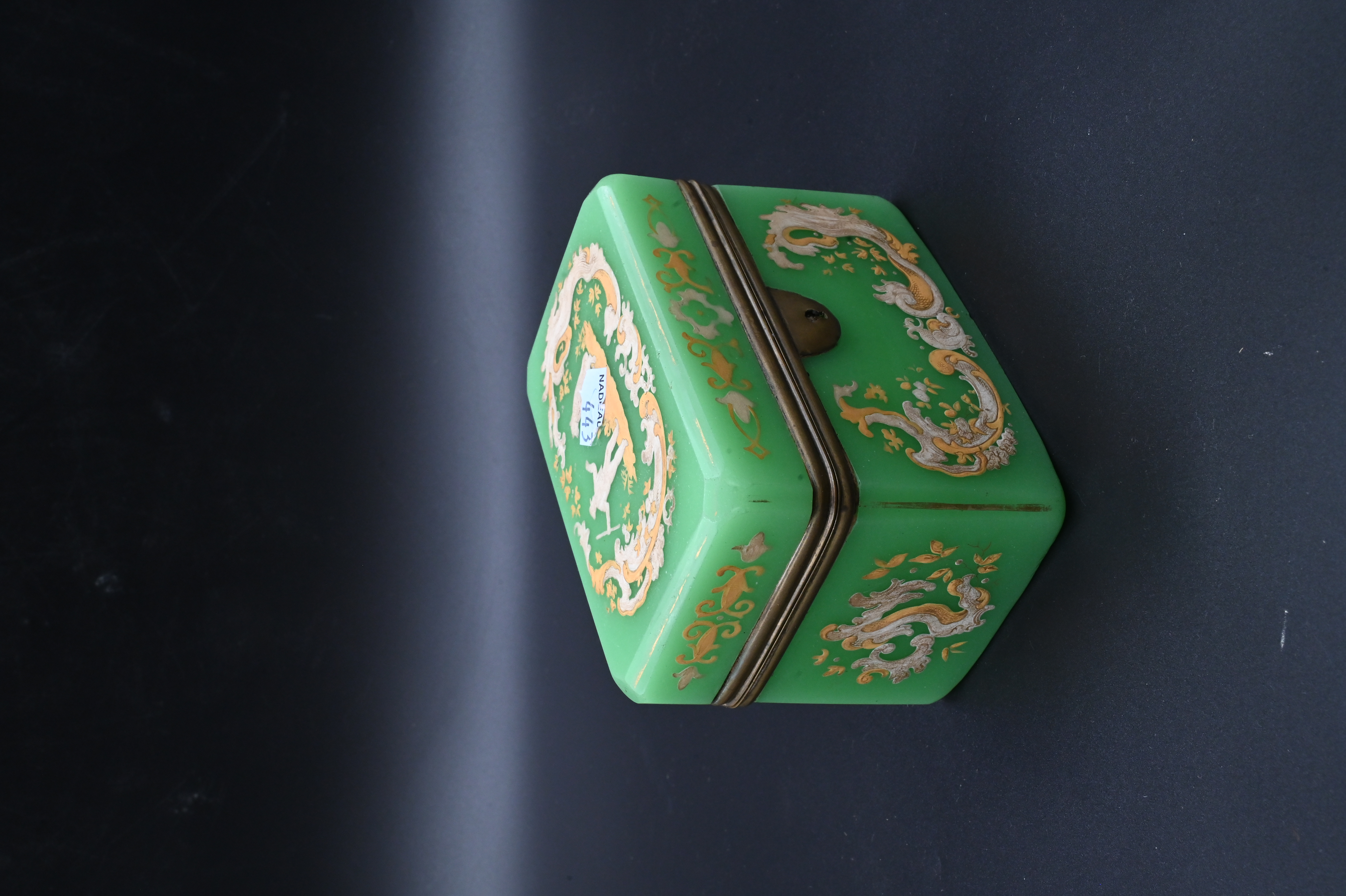 Lot 123: Jade Green Opaline Glass Jewelry Box