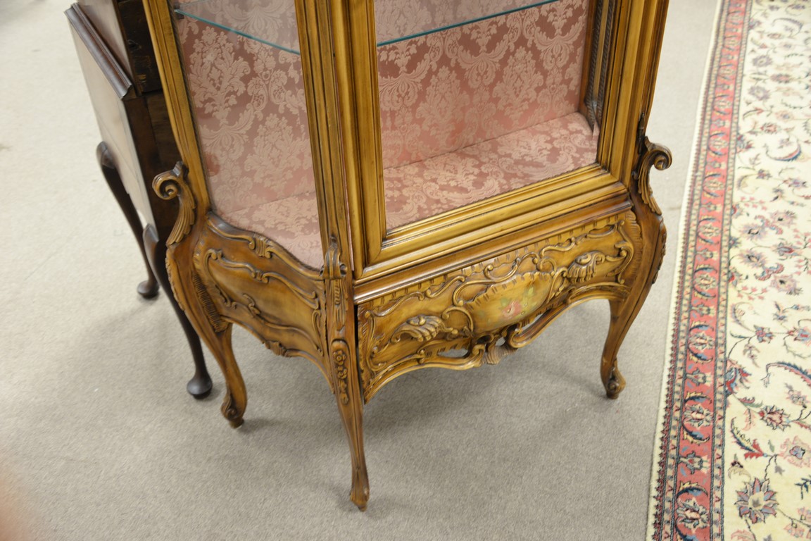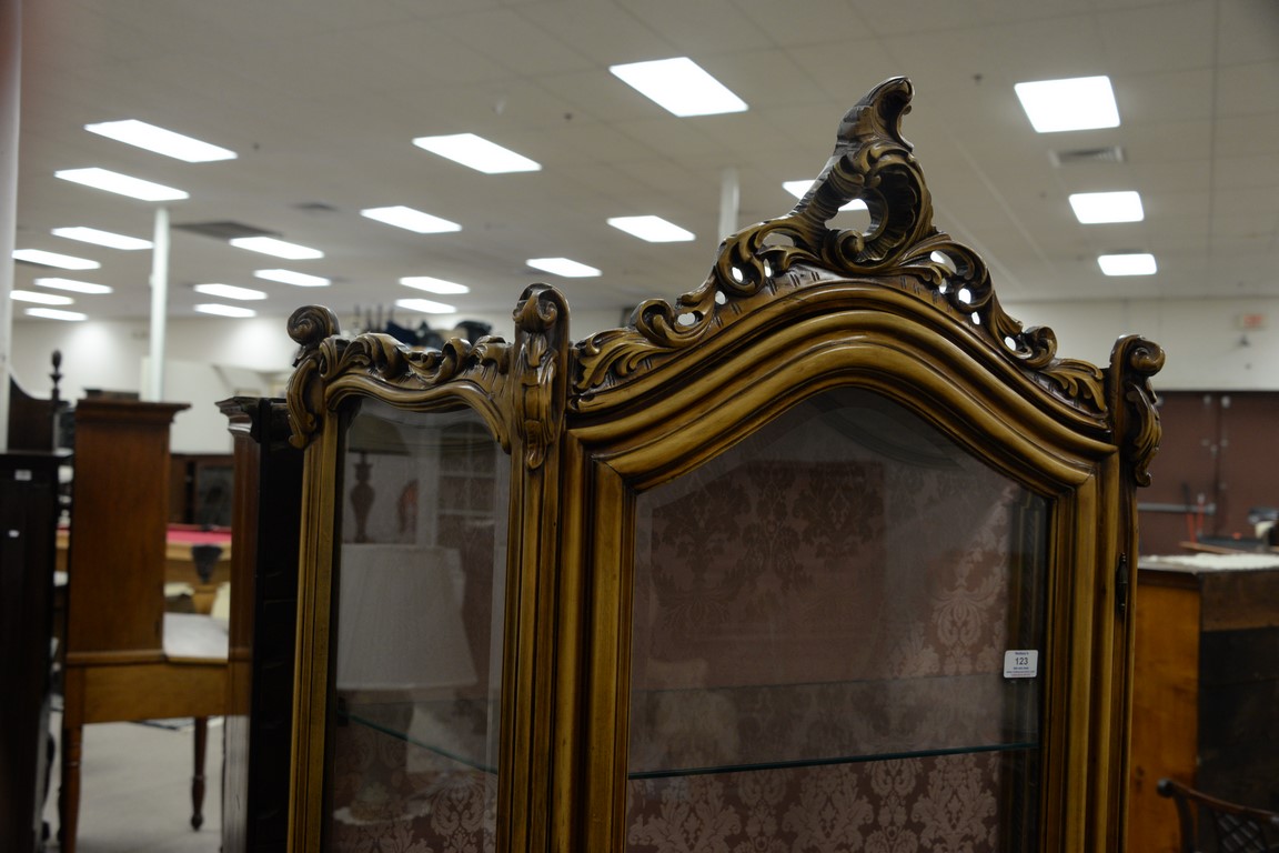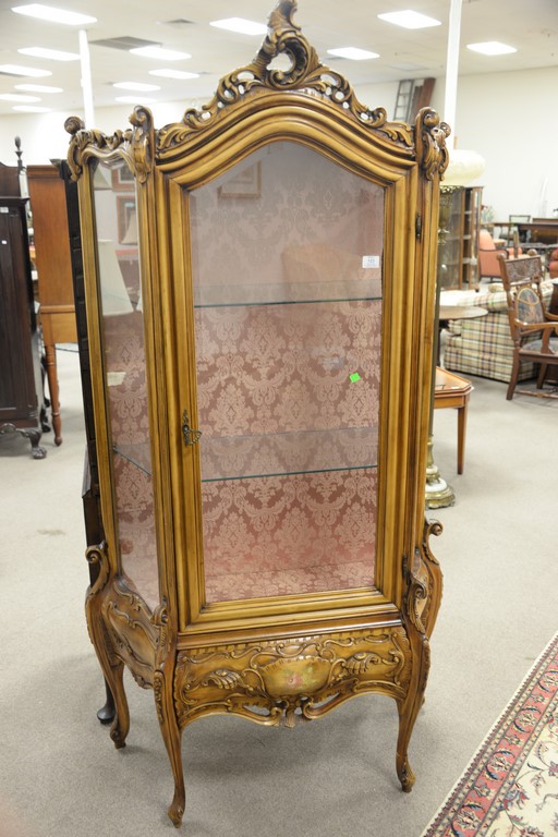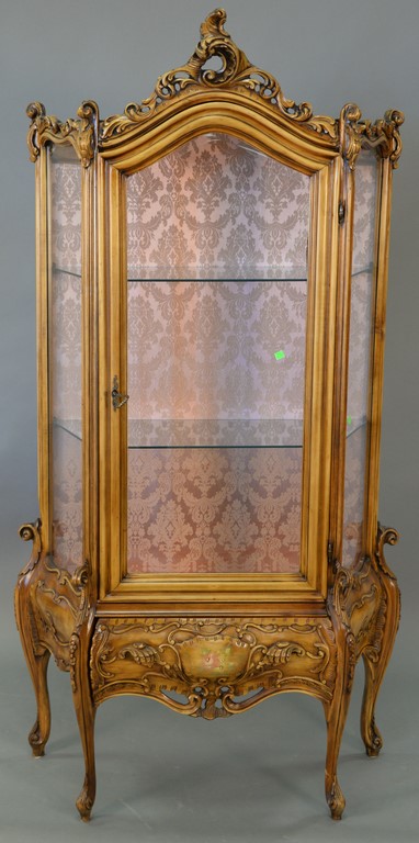 Louis XV style curio cabinet with glass shelves. ht. 77in., wd. 36in.