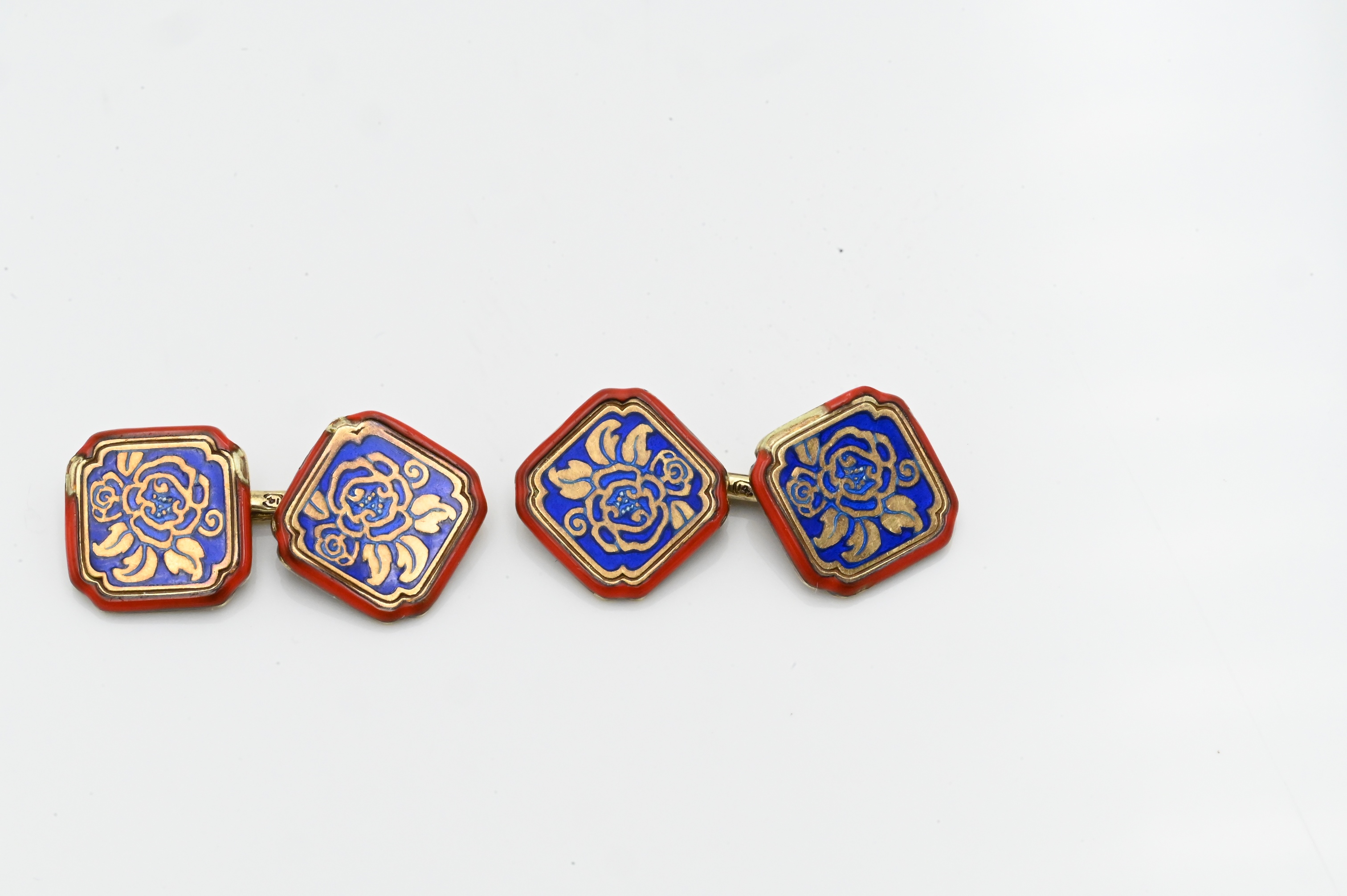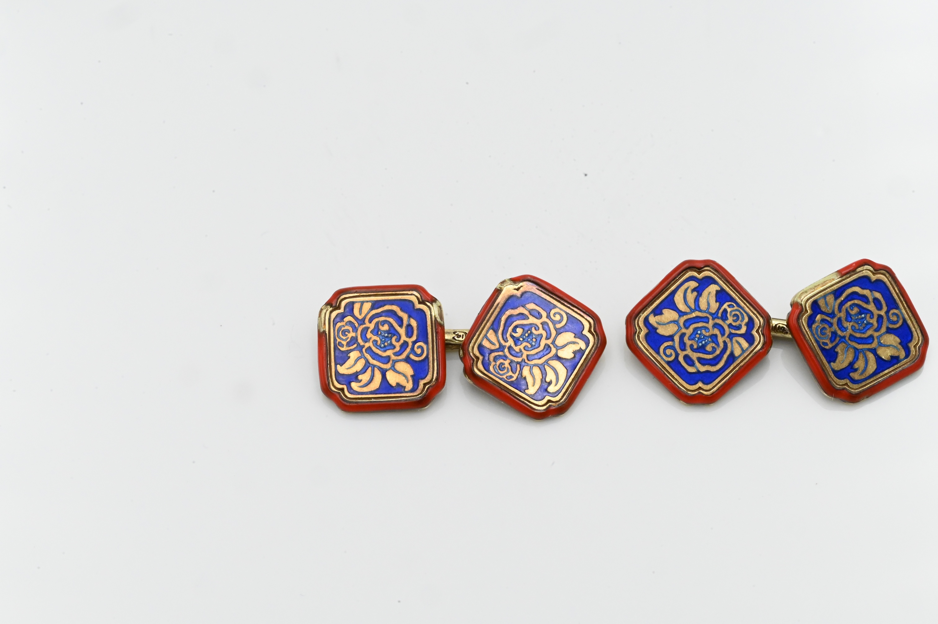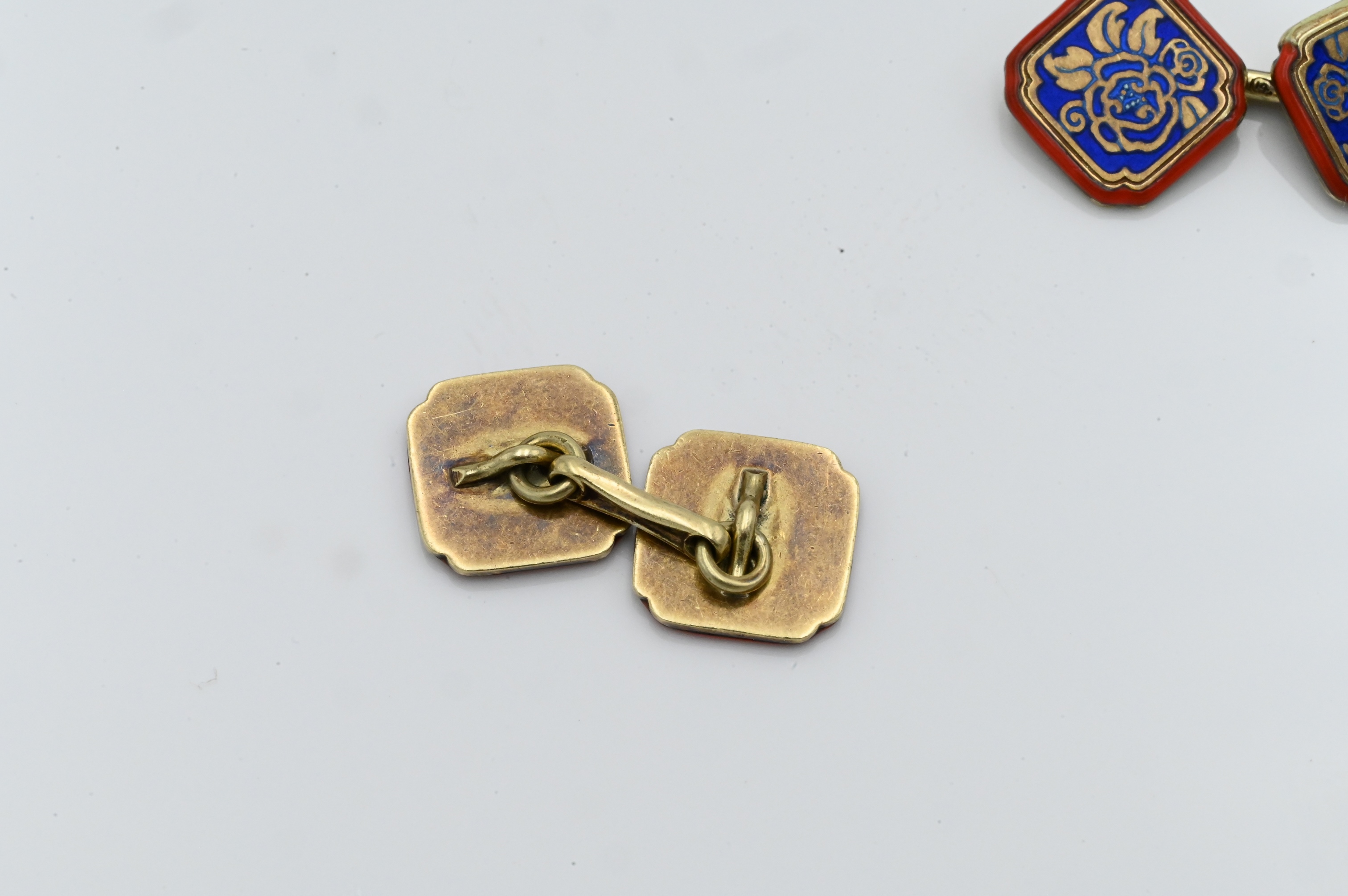Pair of 14K Yellow Gold Enameled Cufflinks