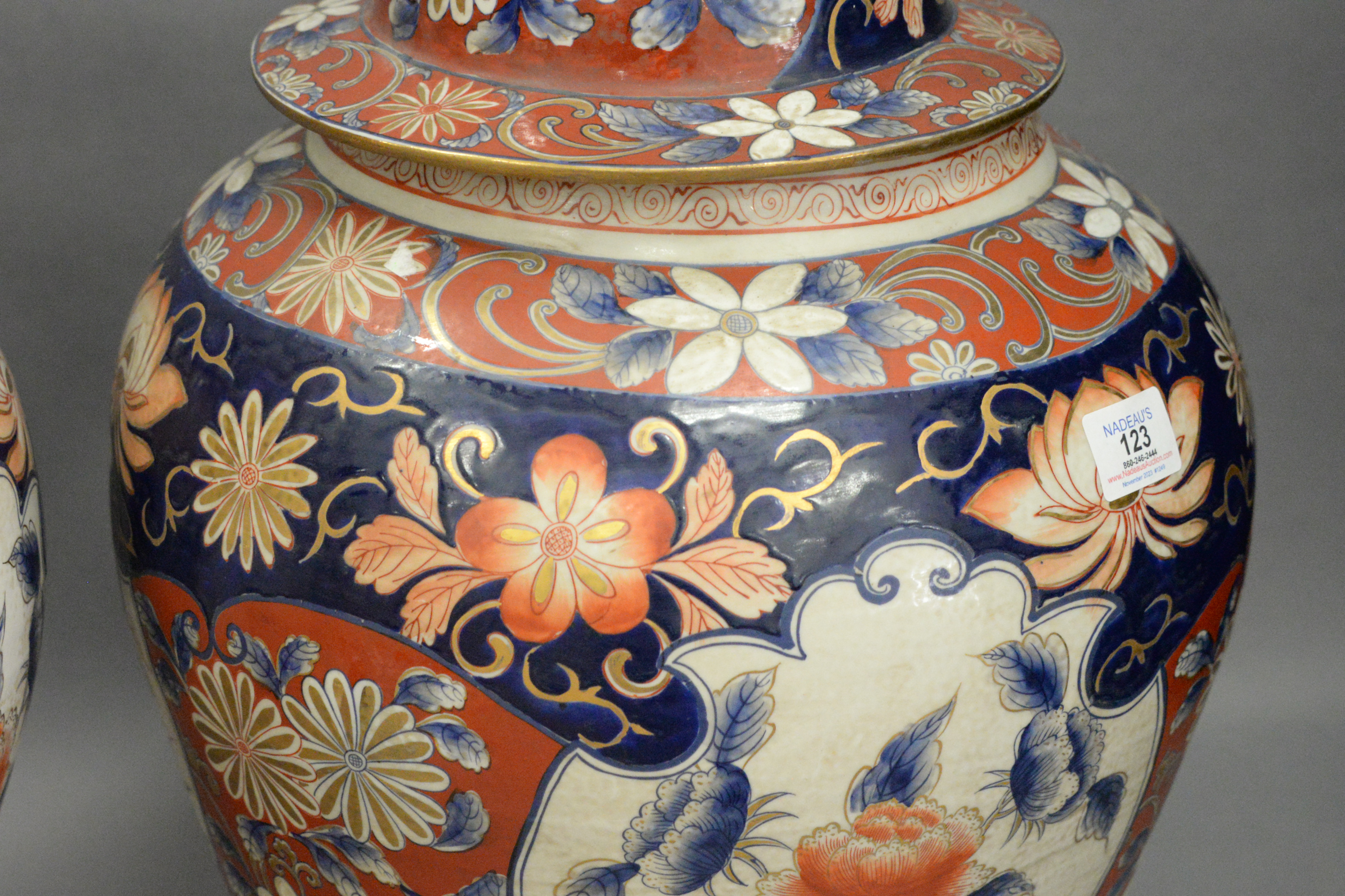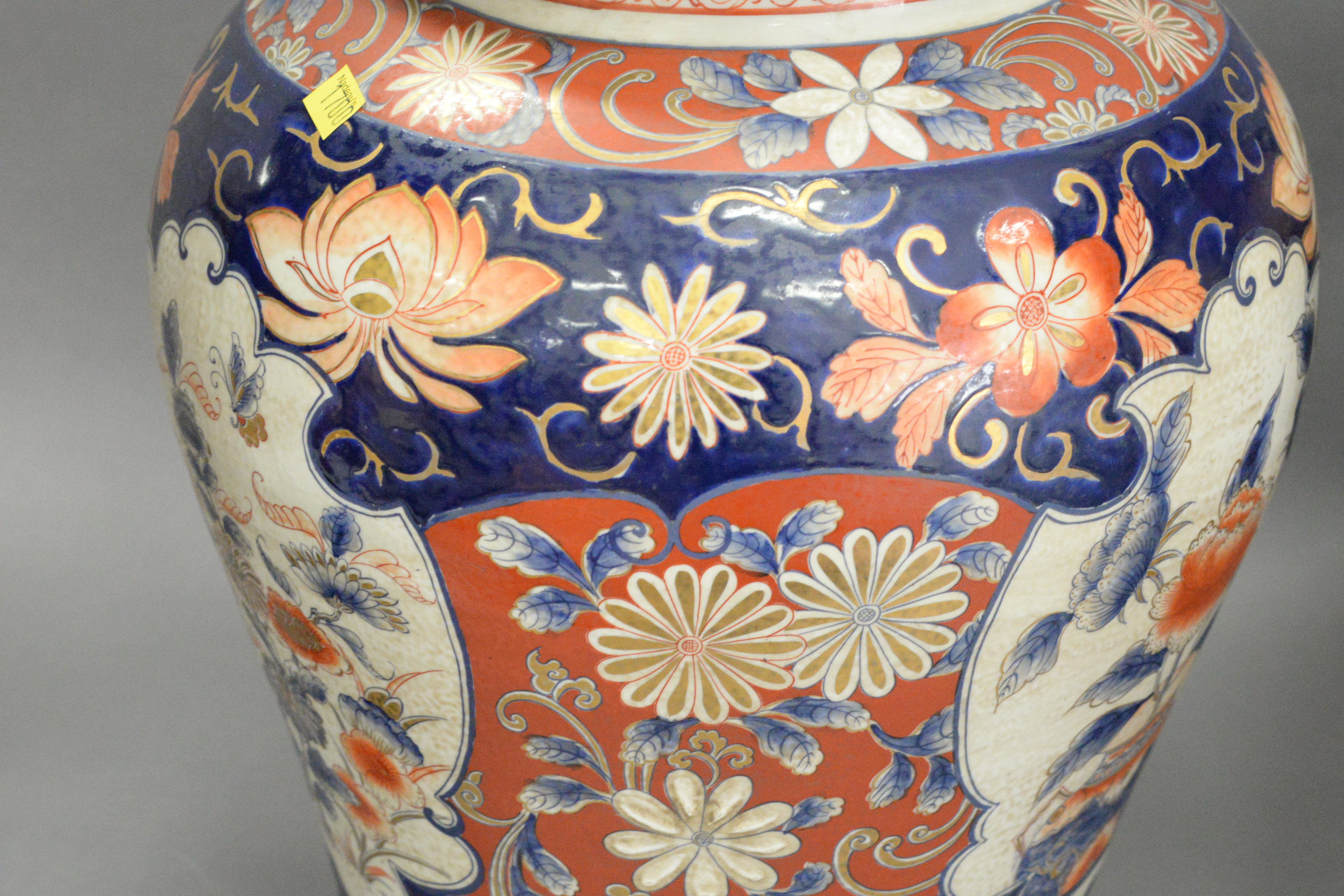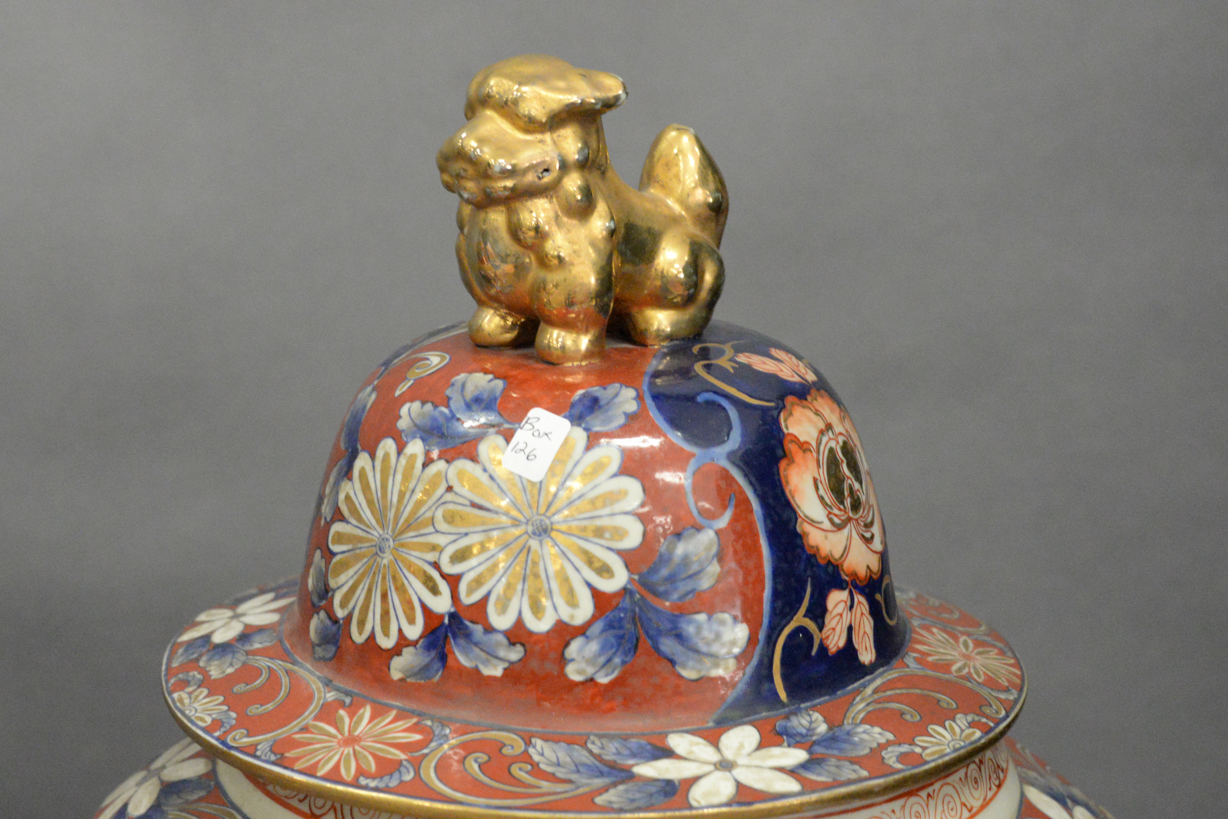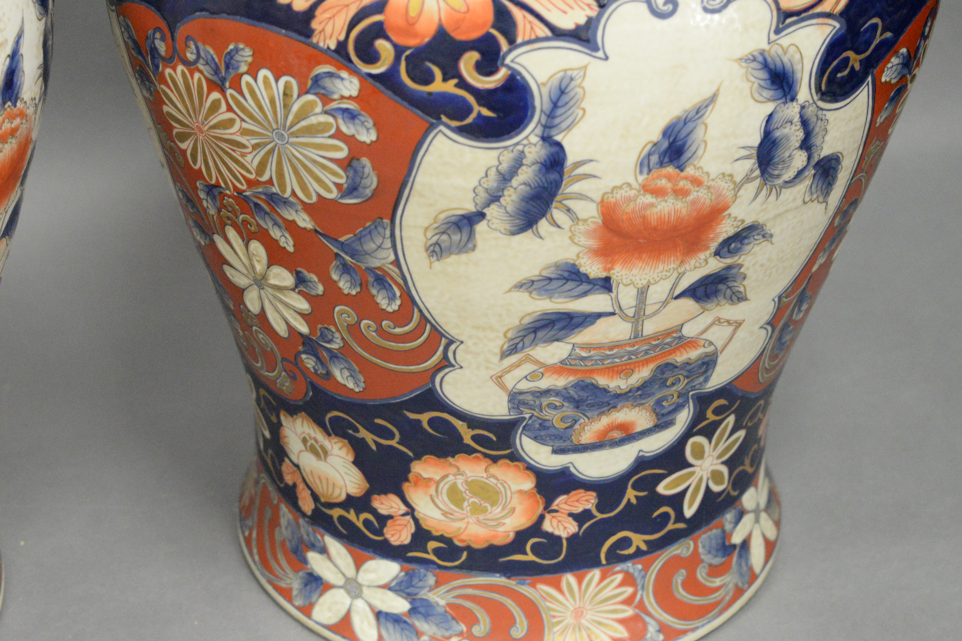 Lot 123: Pair Of Large Imari Porcelain Baluster Covered Vases