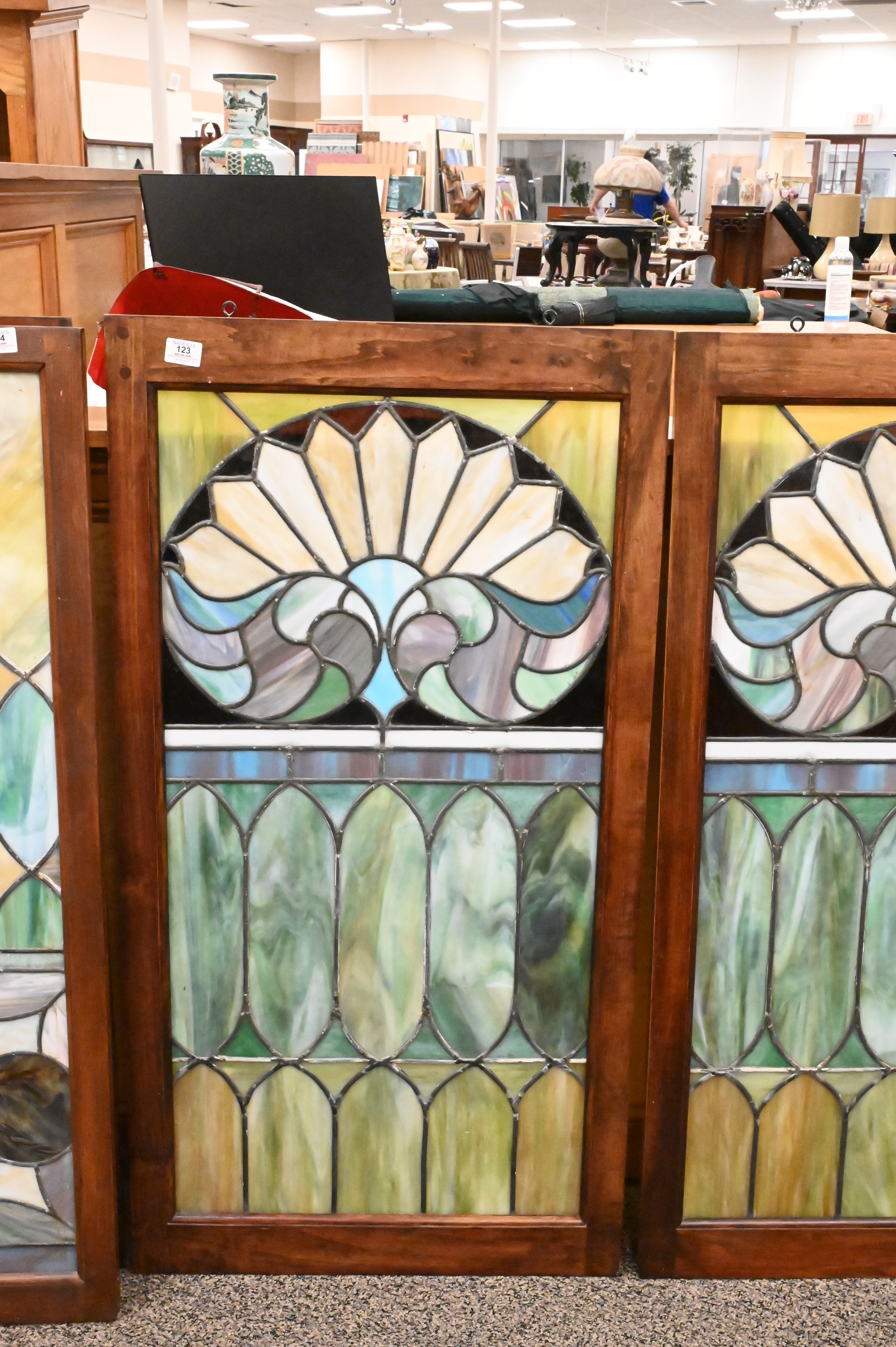 Lot 123: Pair of Stained Leaded Glass Windows