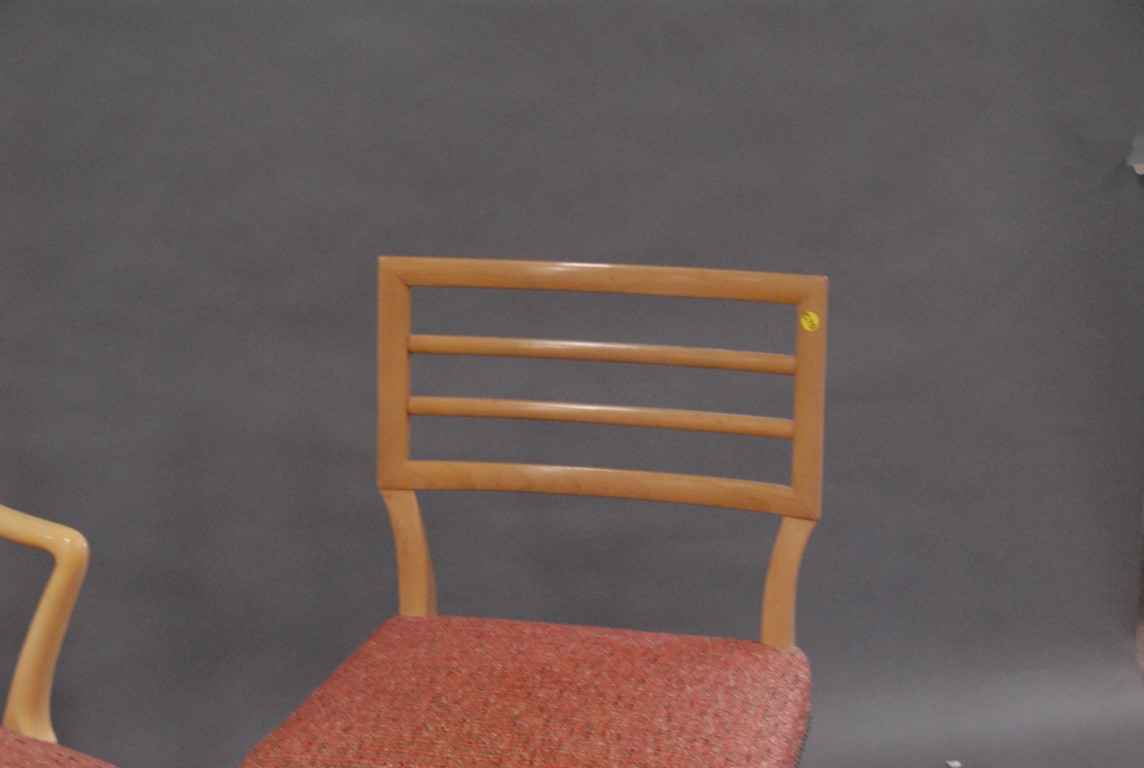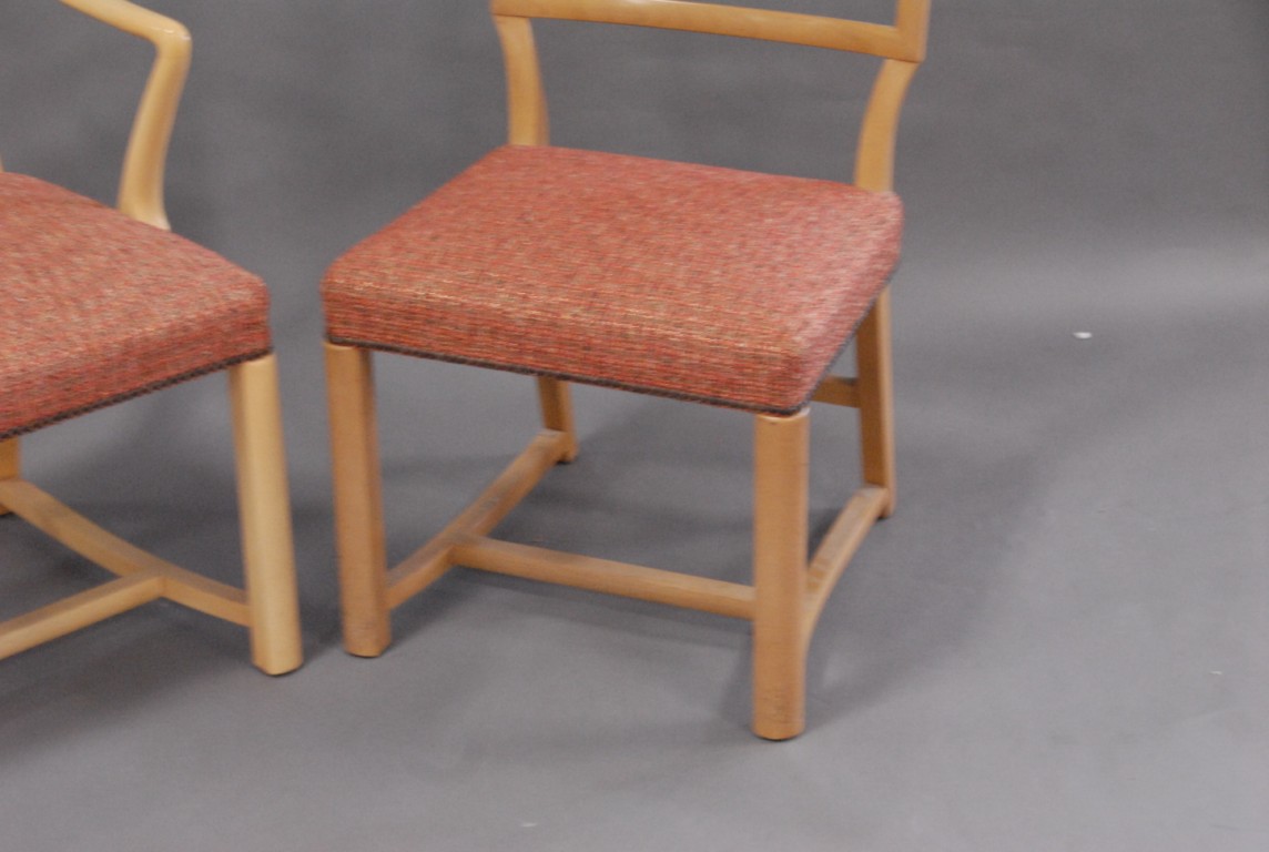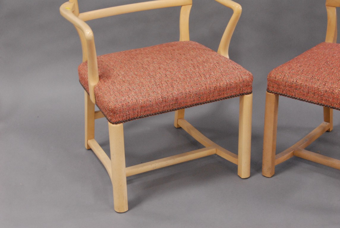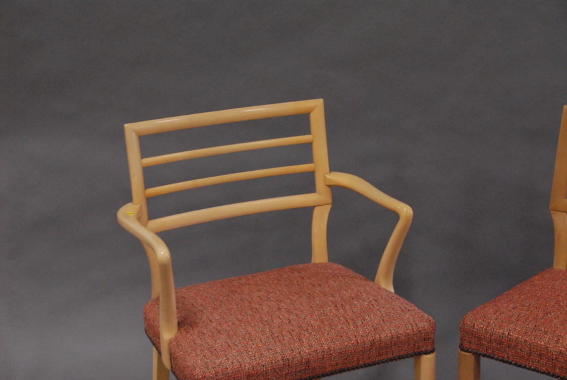 Set of six bleached mahogany modern dining chairs, two arm, four side