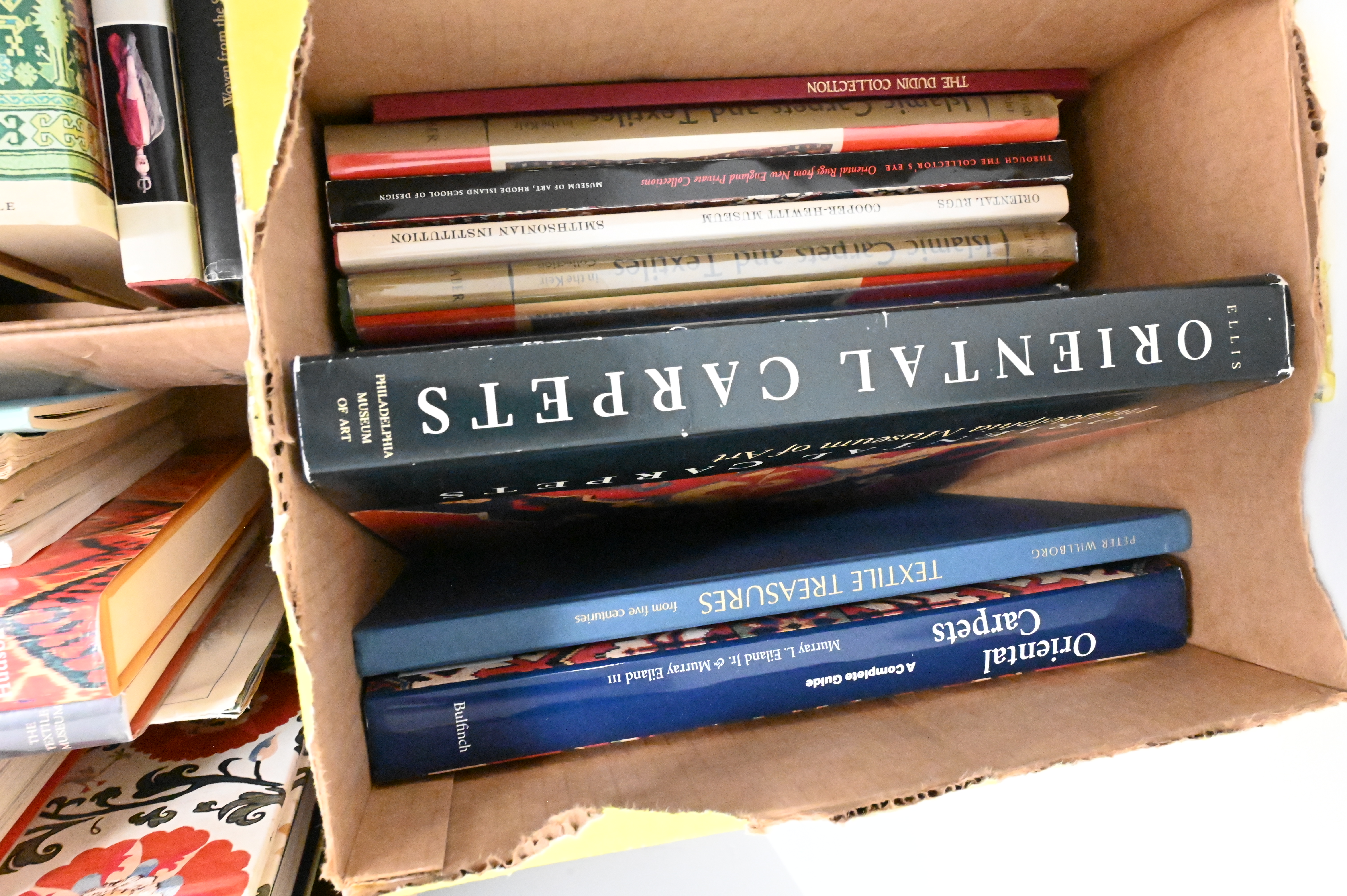 Lot 123: Six Box Lots of Reference Books on Textiles