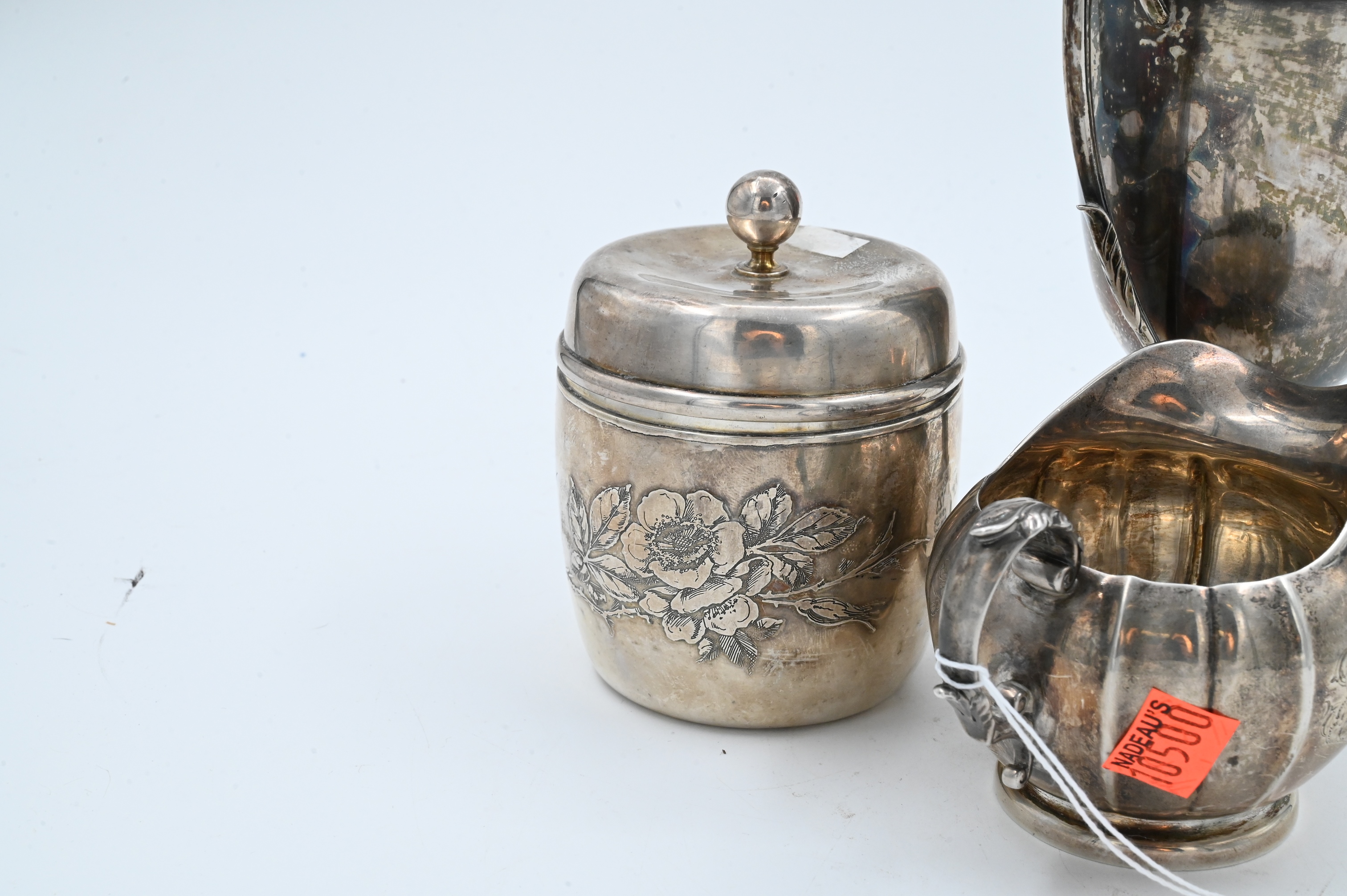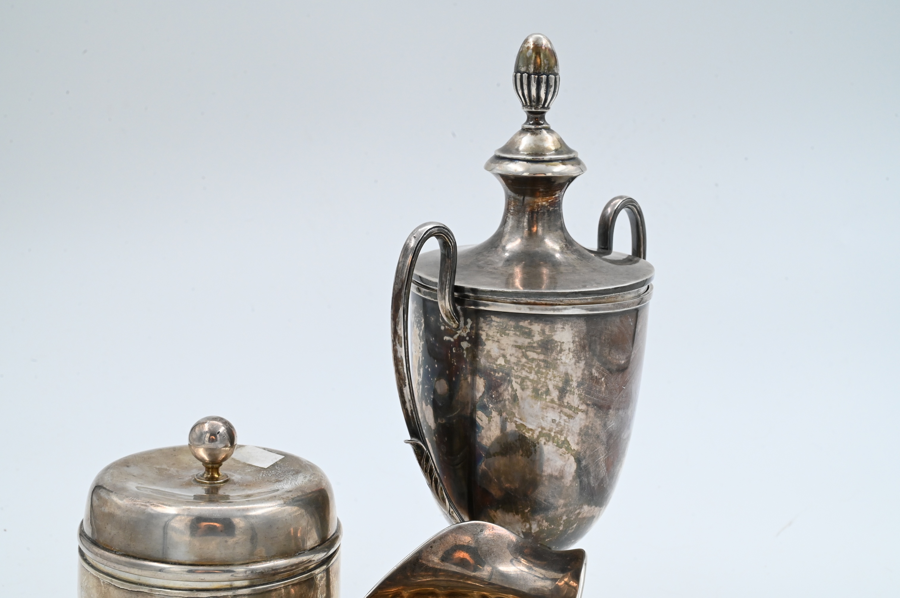 Three Piece Silver Lot with Covered Urn, Creamer, and Covered Sugar