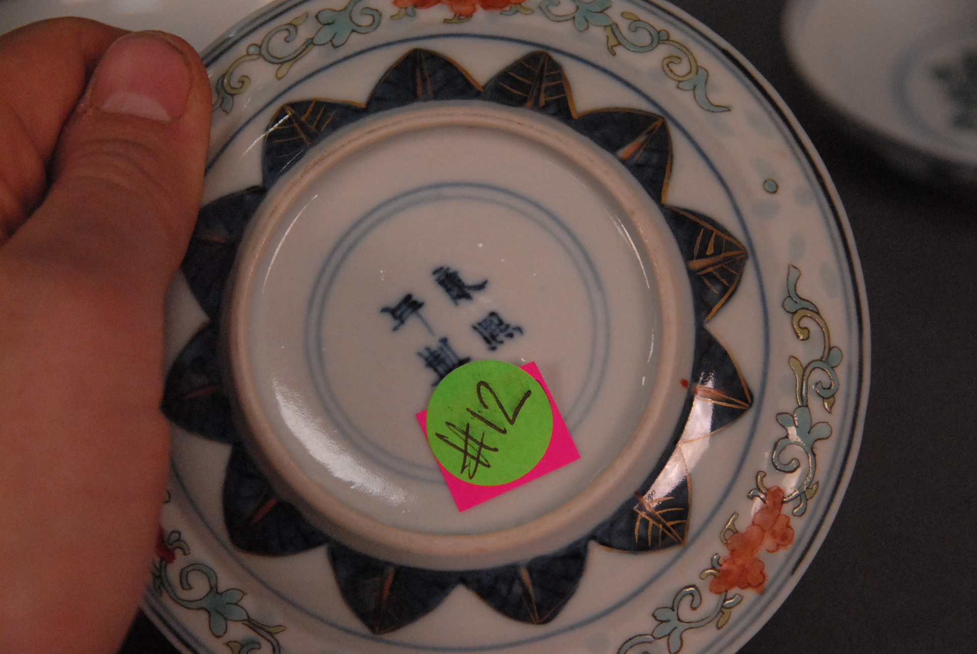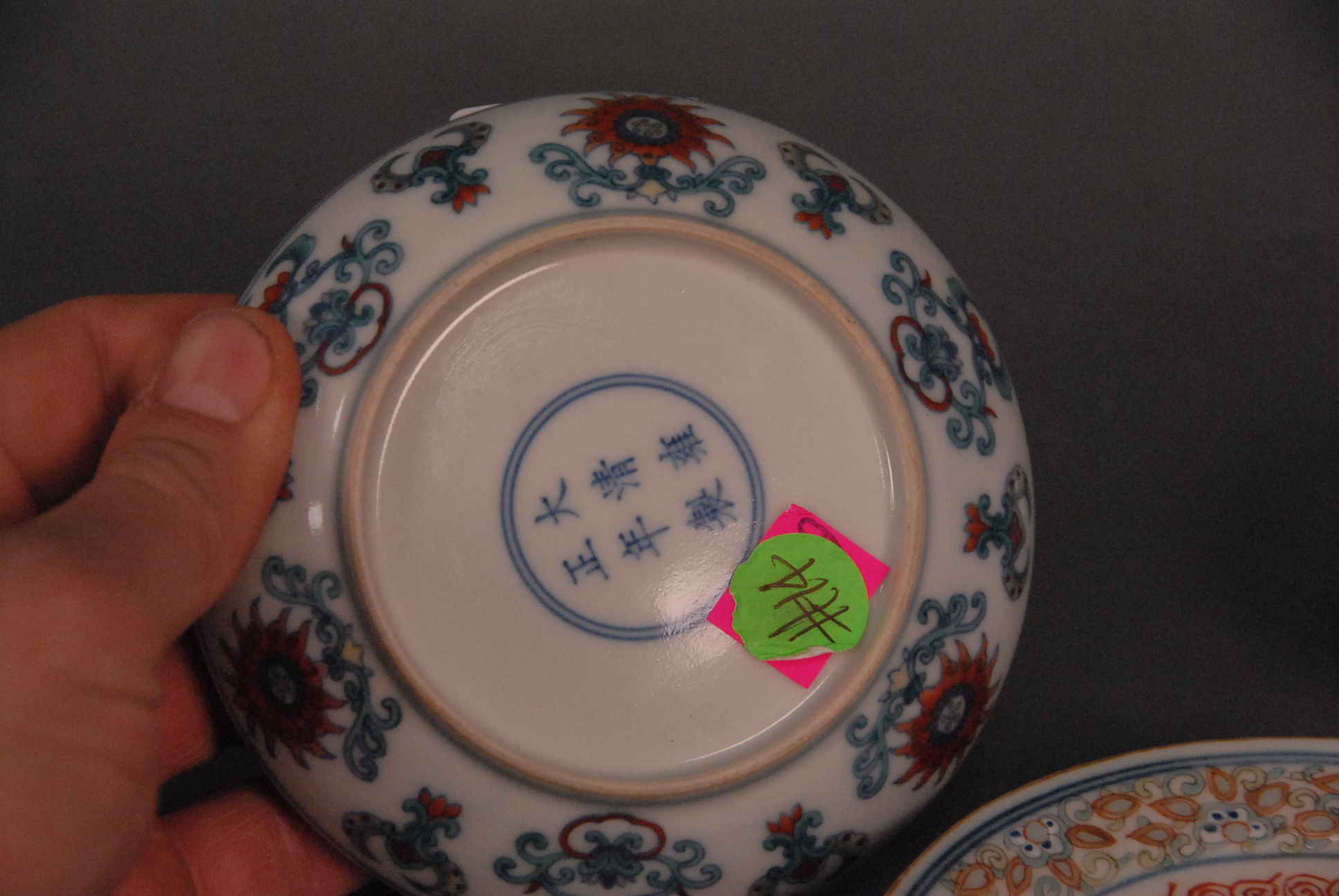 Lot 123: Three small porcelain plates phoenix bird plate dia. 5in., and pair of scrolling blossoming flower plates dia. 4 1/2in.