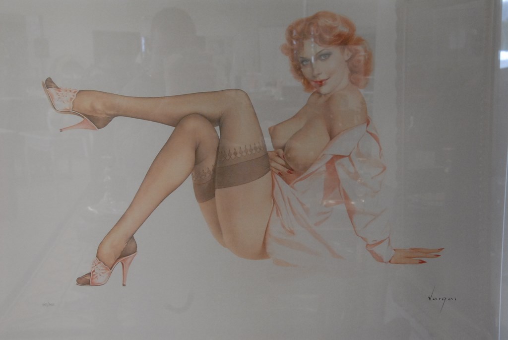 Two piece lot: Alberto Vargas 1896-1983 lithograph of seated nude, signed in print lower right Vargas, numbered 195/450, sight size 25 x 35 and Vargas poster.