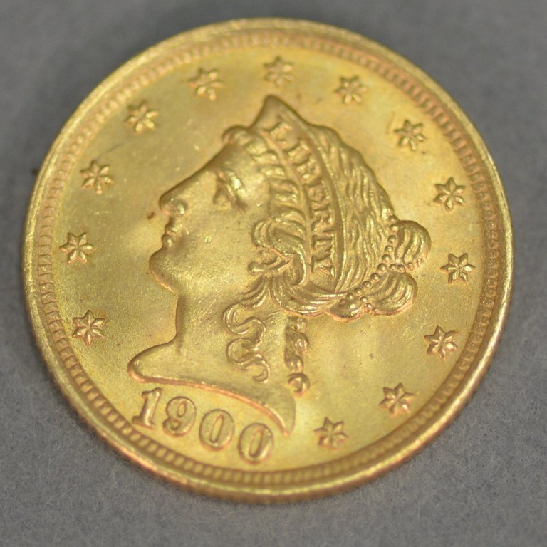 1900 2 1/2 Liberty gold coin, uncirculated.