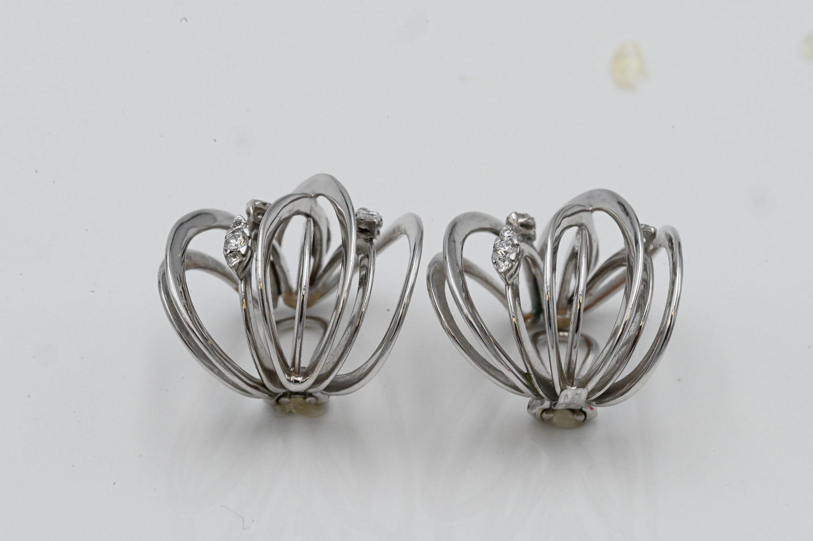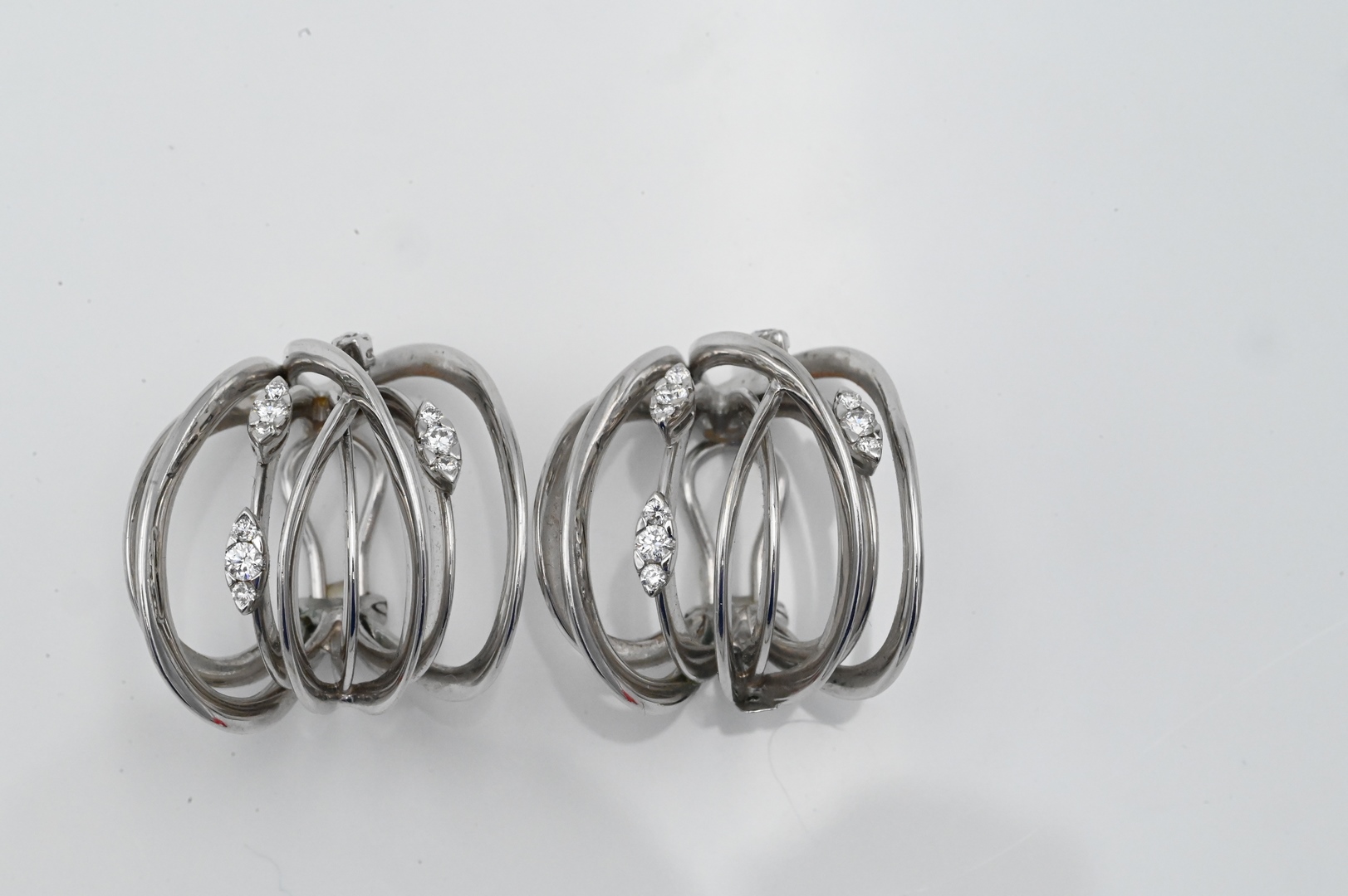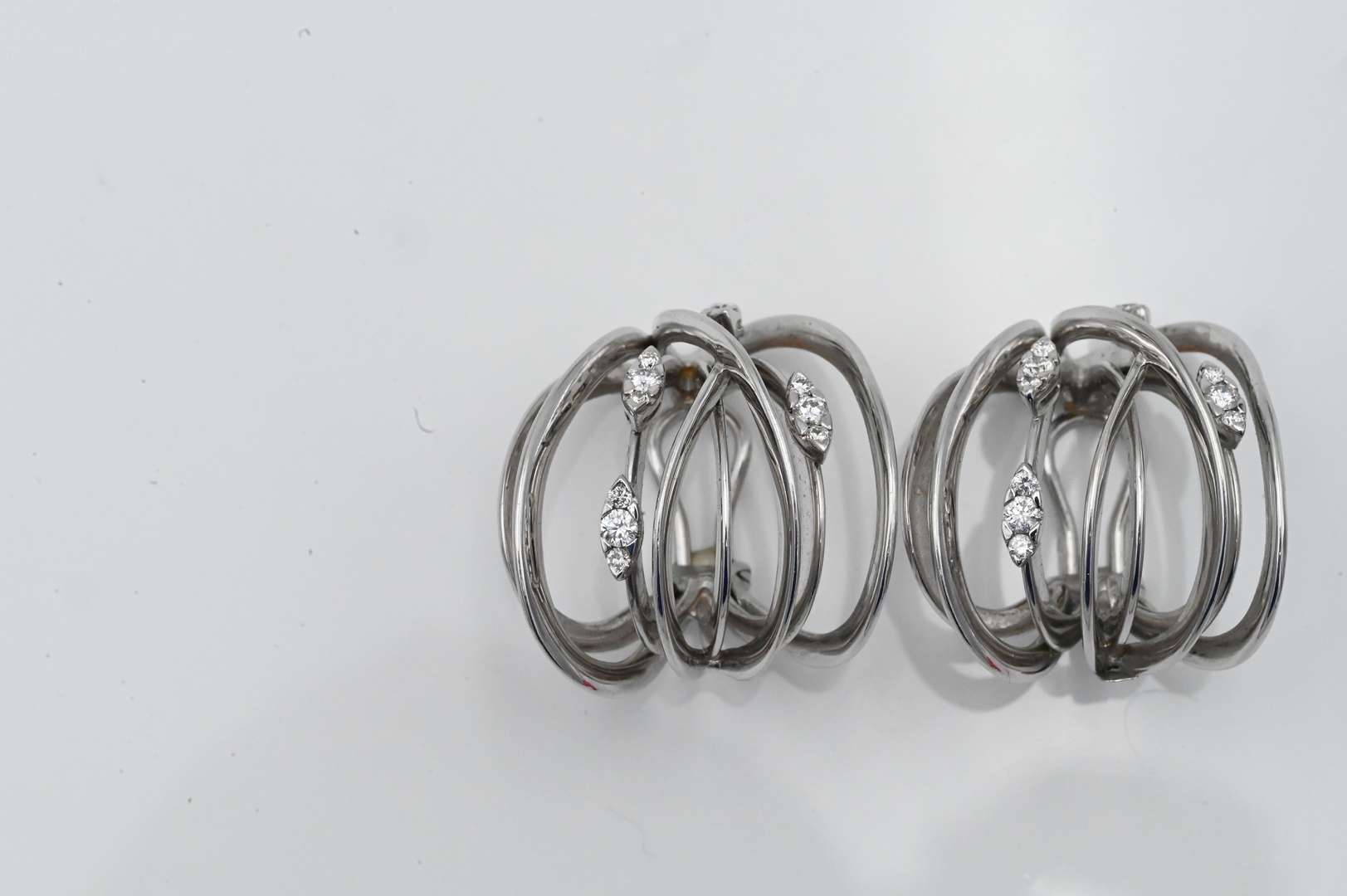 Lot 124: A Pair of 18 Karat White Gold Freeform Earrings with Diamonds