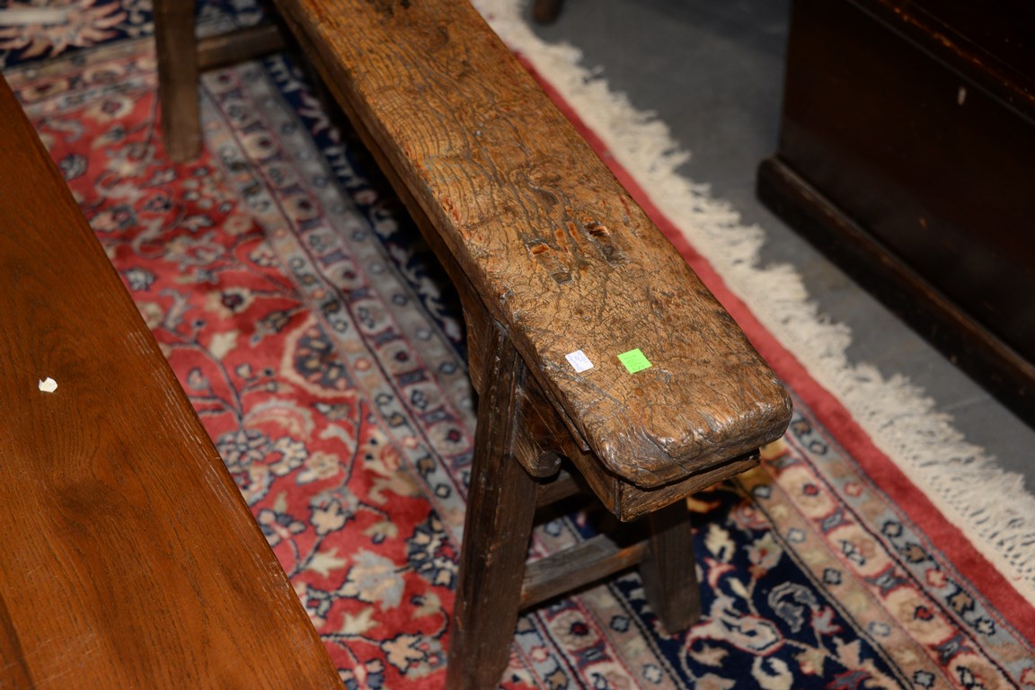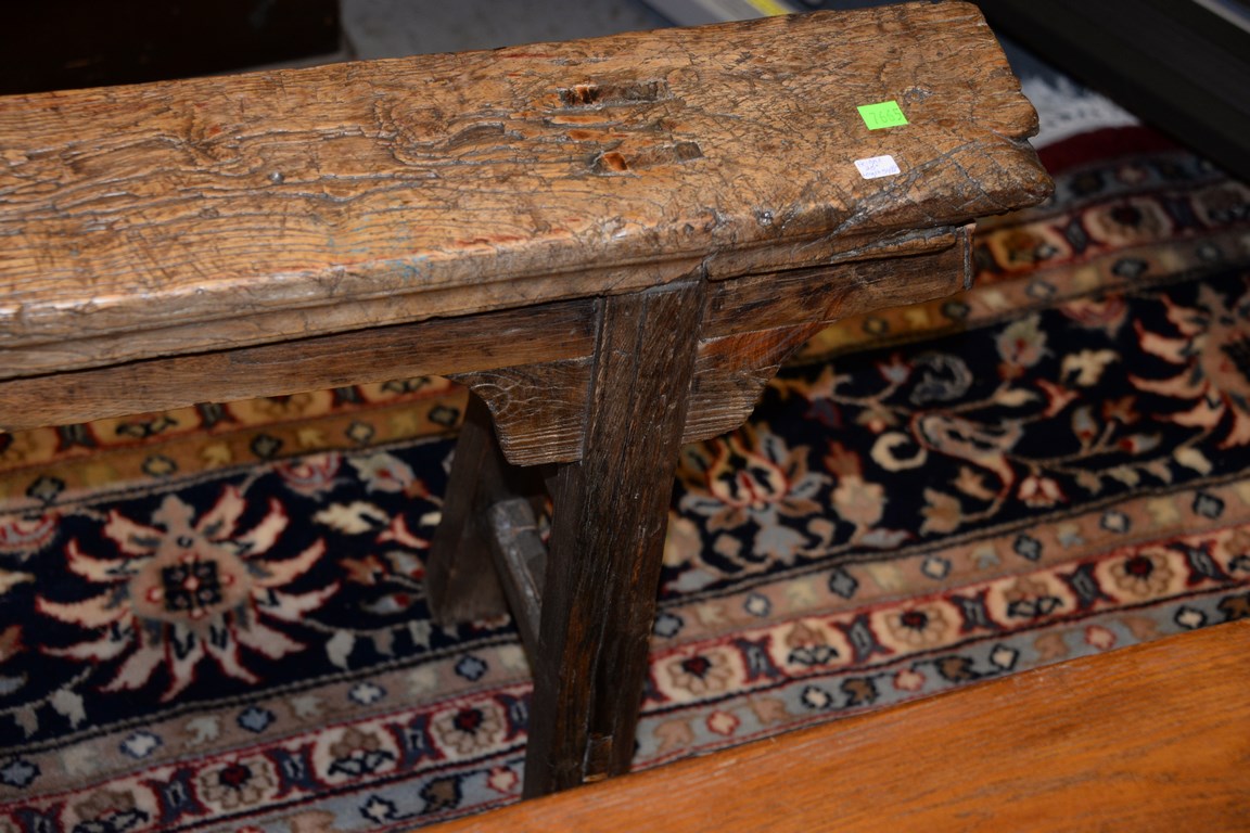 Early hardwood bench, ht. 20 in. lg. 54 in.