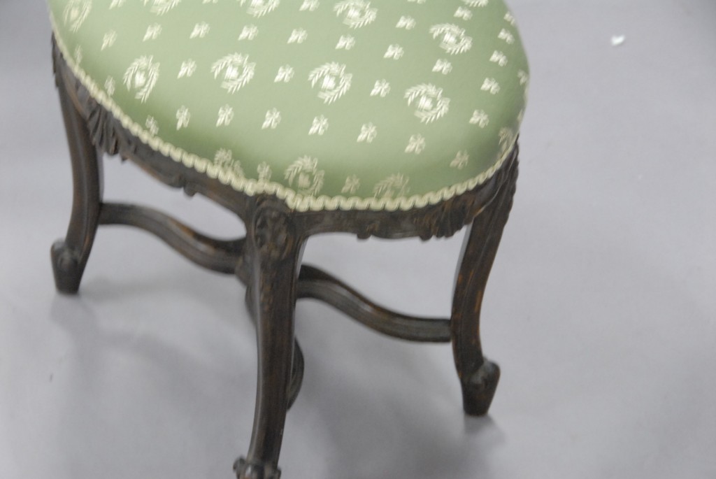 French style oval stool with upholstered top.