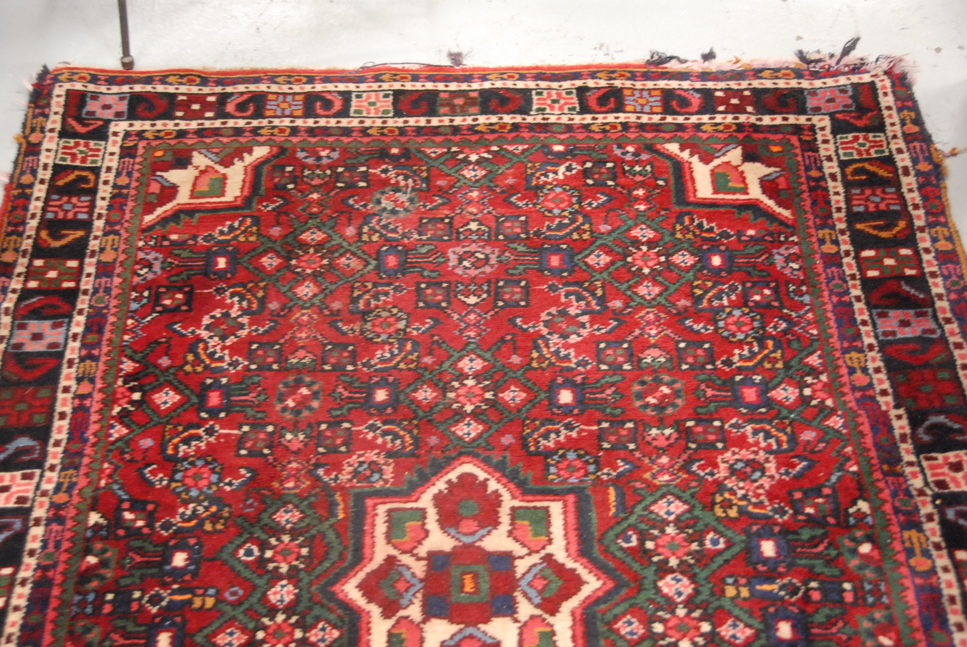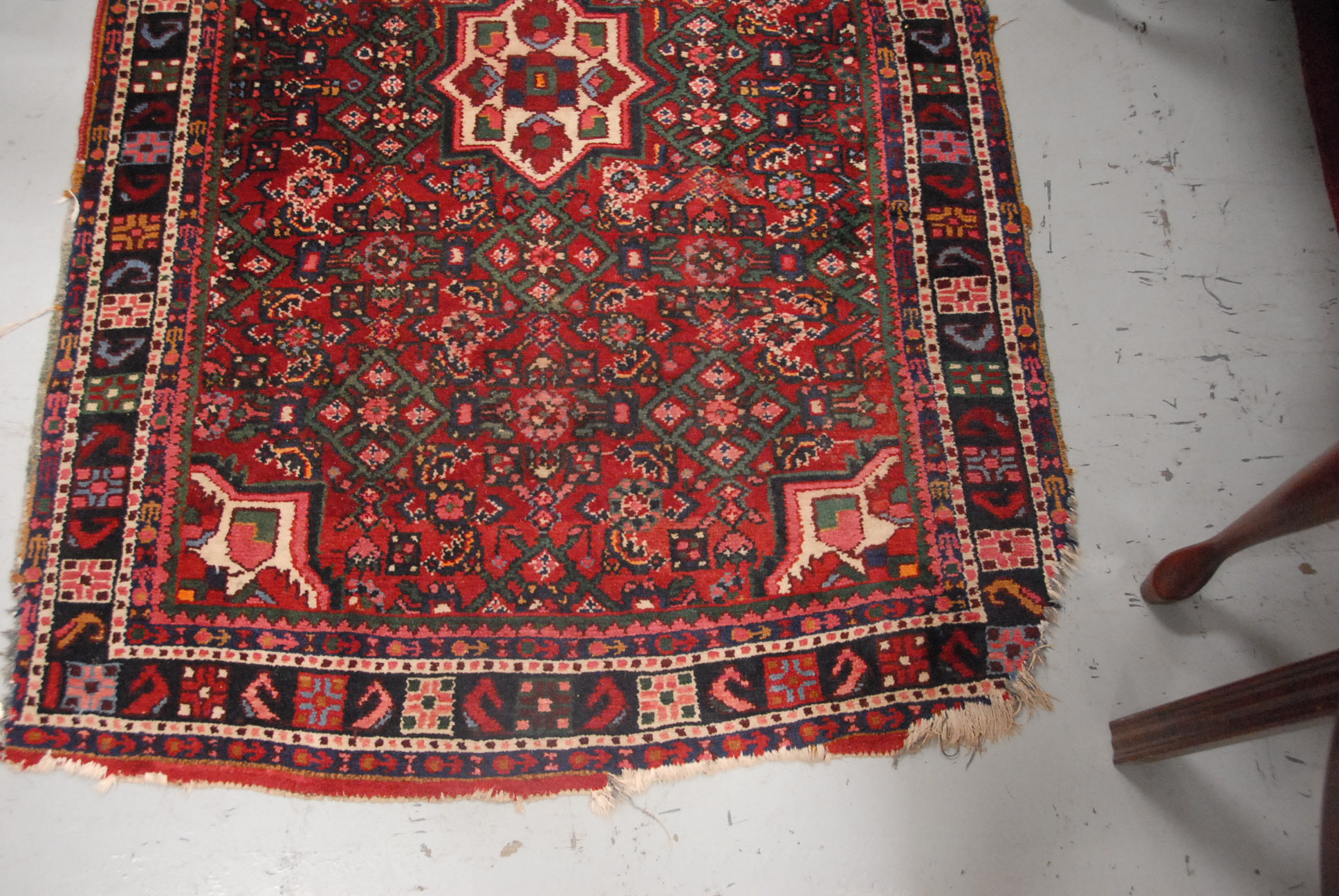 Hamadan Oriental rug one corner with loss, 3’11 x 5’8.