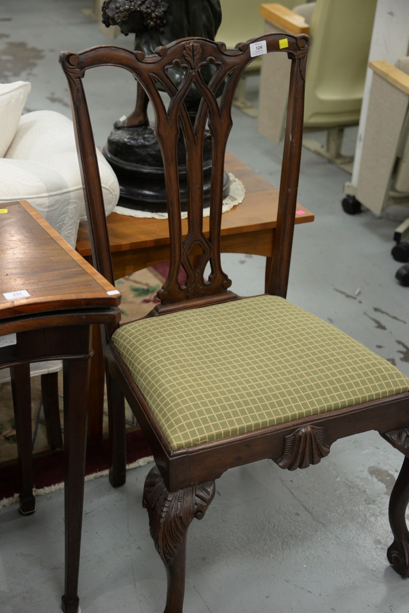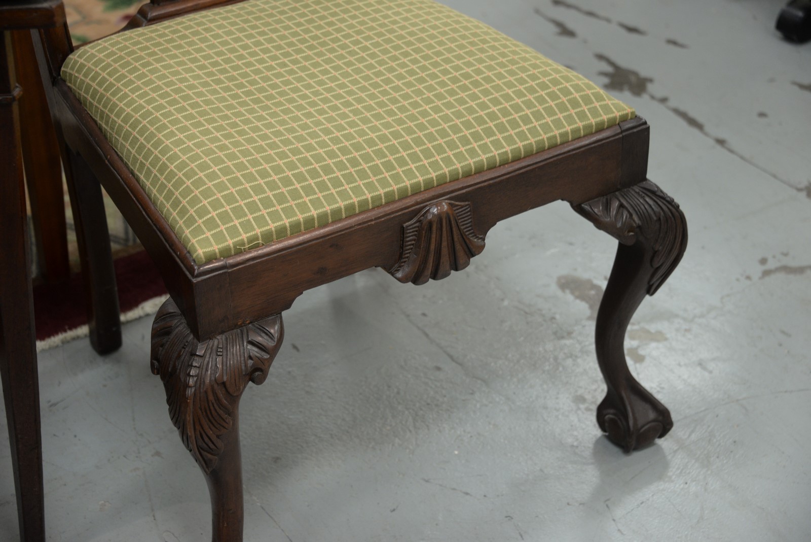 Pair of custom mahogany Chippendale style side chairs with ball and claw feet.