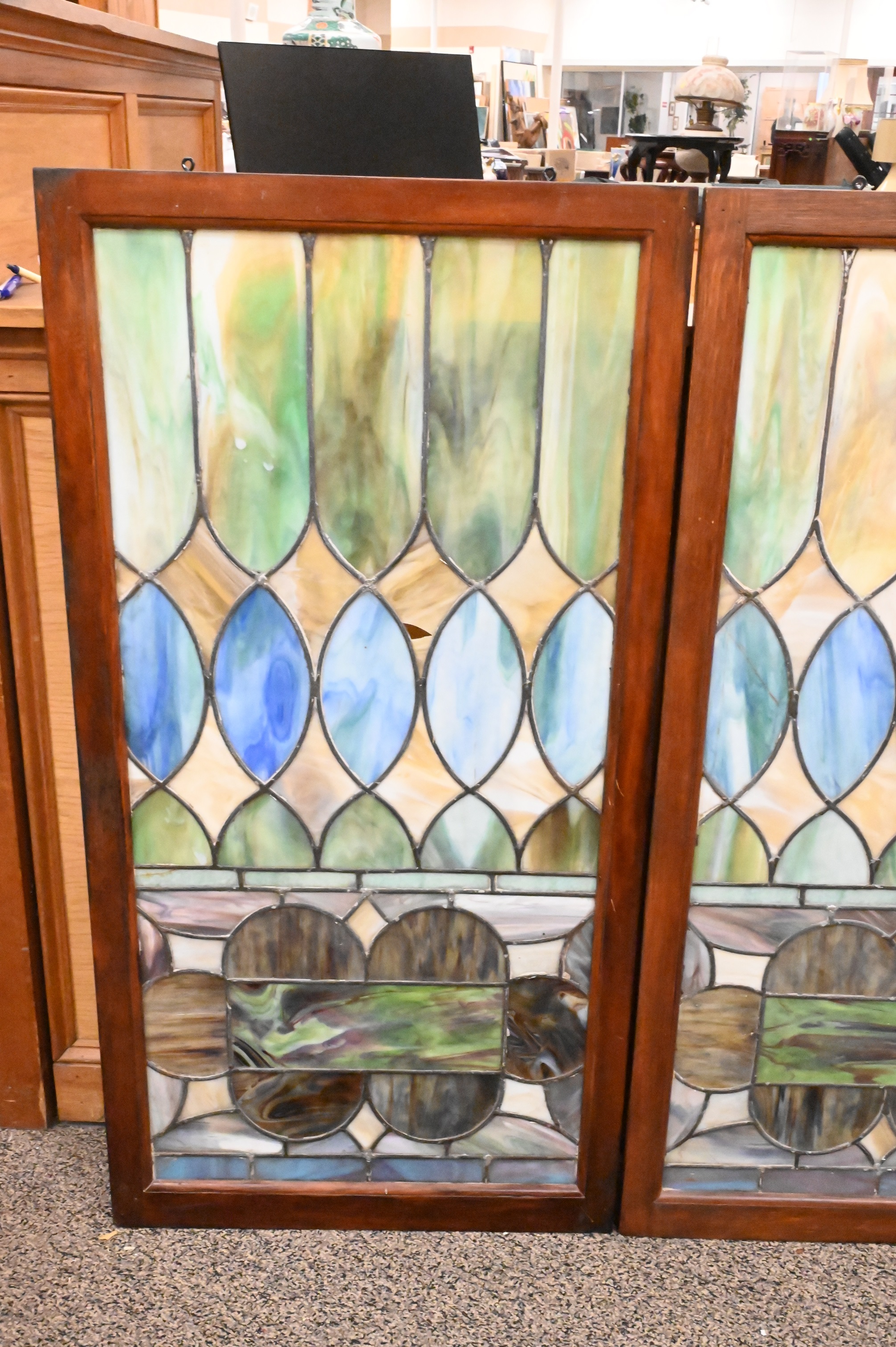 Pair of Stained Leaded Glass Windows, 46″ x 23″